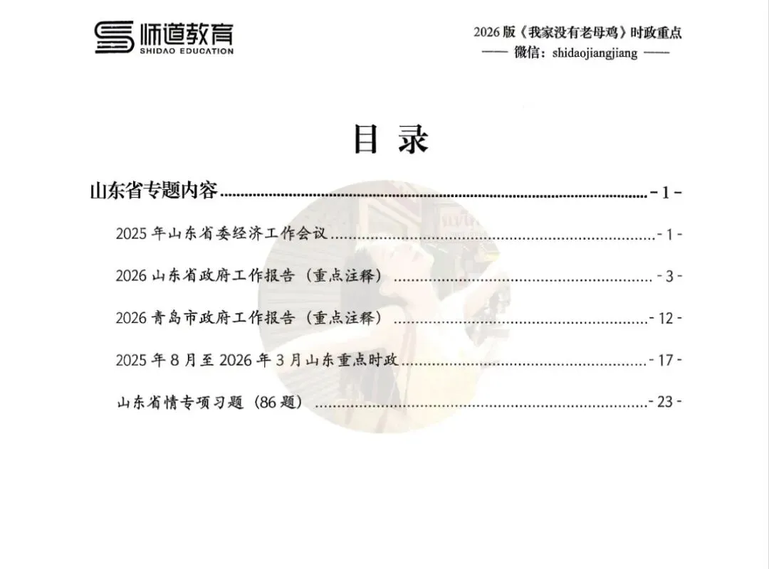 26青岛教招《我家没有老母鸡》时政电子版(时政天花板,懂得都懂) 青岛师道 我家没有老母鸡 HELLO同学们 今天苏苏给大家带来了 我家没有老母鸡时政 时政天花板 每年都会压中源题 青岛考生一定要刷 考前弯道超车必备神器 我家没有老母鸡 1 我家没有老母鸡时政 图片仅为部分展示内容 更多资料获取方式