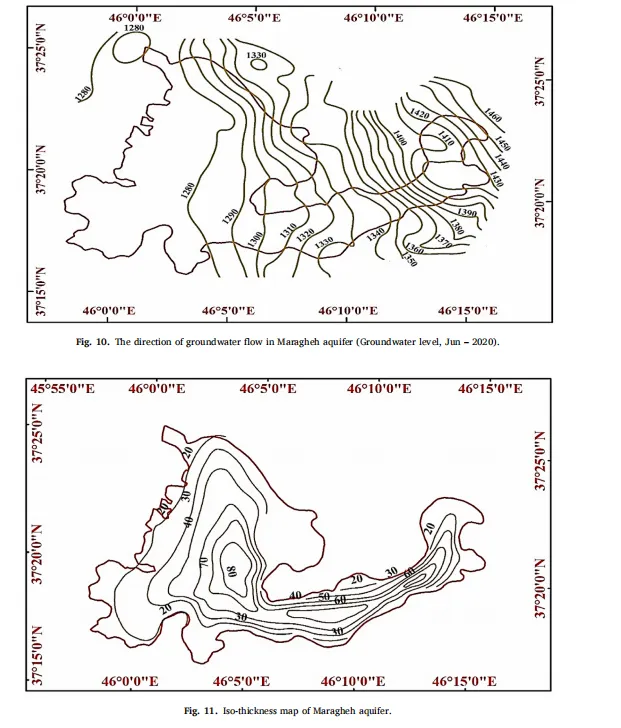 马拉盖盆地位于伊朗西北部,地理坐标37°24′-37°44′N、45°57′-46°45′E(如Figure 1所示)。马拉盖含水层属于乌尔米亚湖流域,面积188.41平方公里。该区域主要河流为苏菲柴河,发源于萨汉德山脉南坡。2013-2020年马拉盖站的数据显示年均降水量352.1 mm,年均温12.95°C。盆地总面积1096.1平方公里,其中平原(冲积区)223平方公里,山区873.1平方公里。该盆地位于半干旱区,主要为农业区,地表水和地下水均用于灌溉和生活用途。近年来该地区面临环境挑战,包括卡维赫碳酸钠工厂污水池破裂事件及随后向下游天然渠道排放盐碱废水。