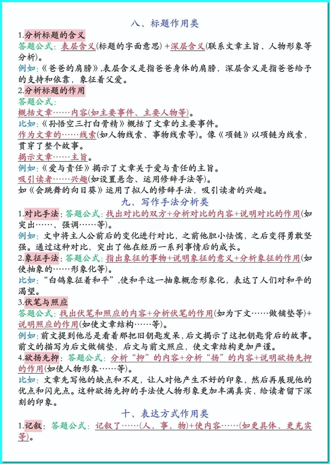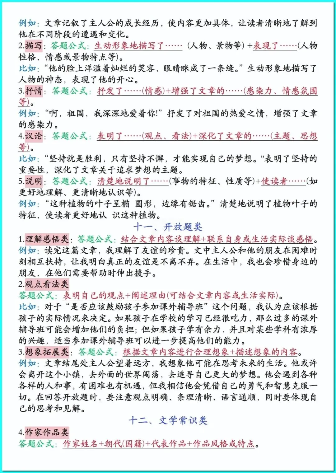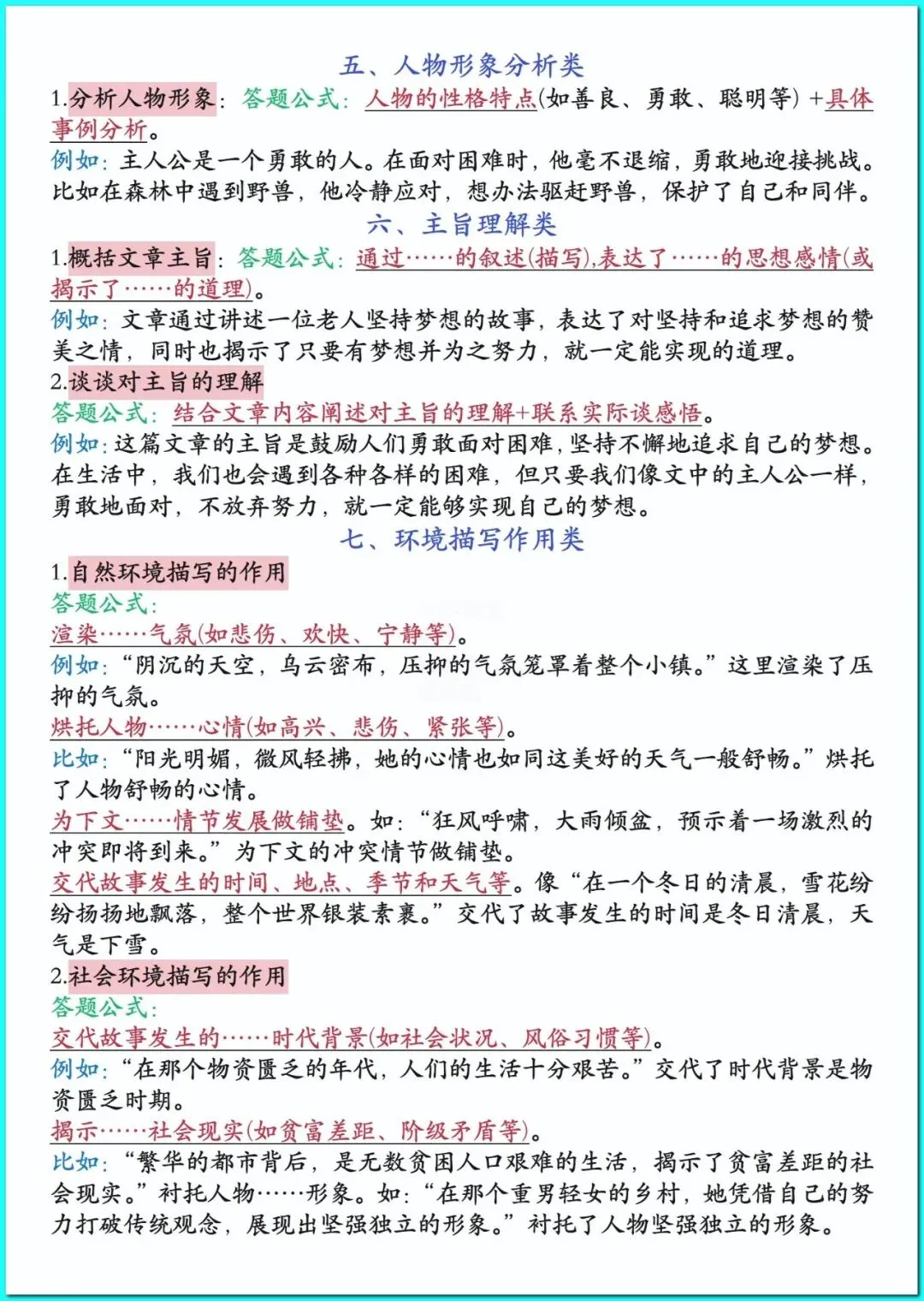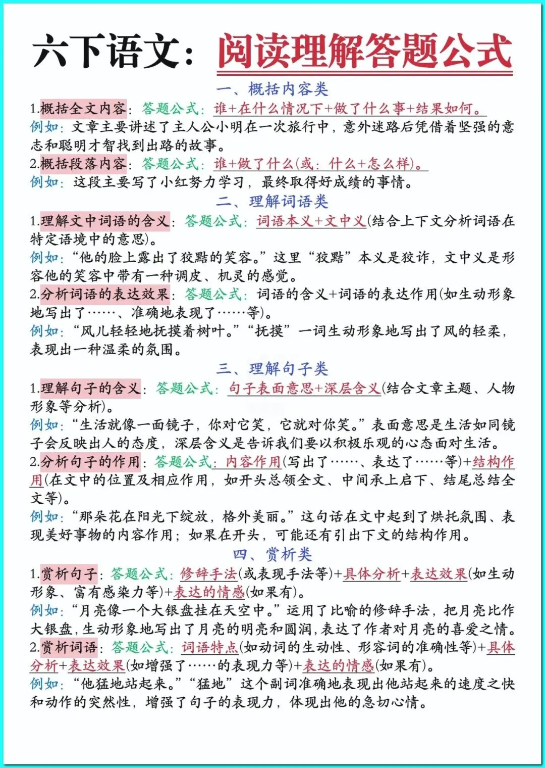 26春人教部编版六年级下册语文《全册阅读理解答题公式》+1-8单元重点知识汇总 高清可打印