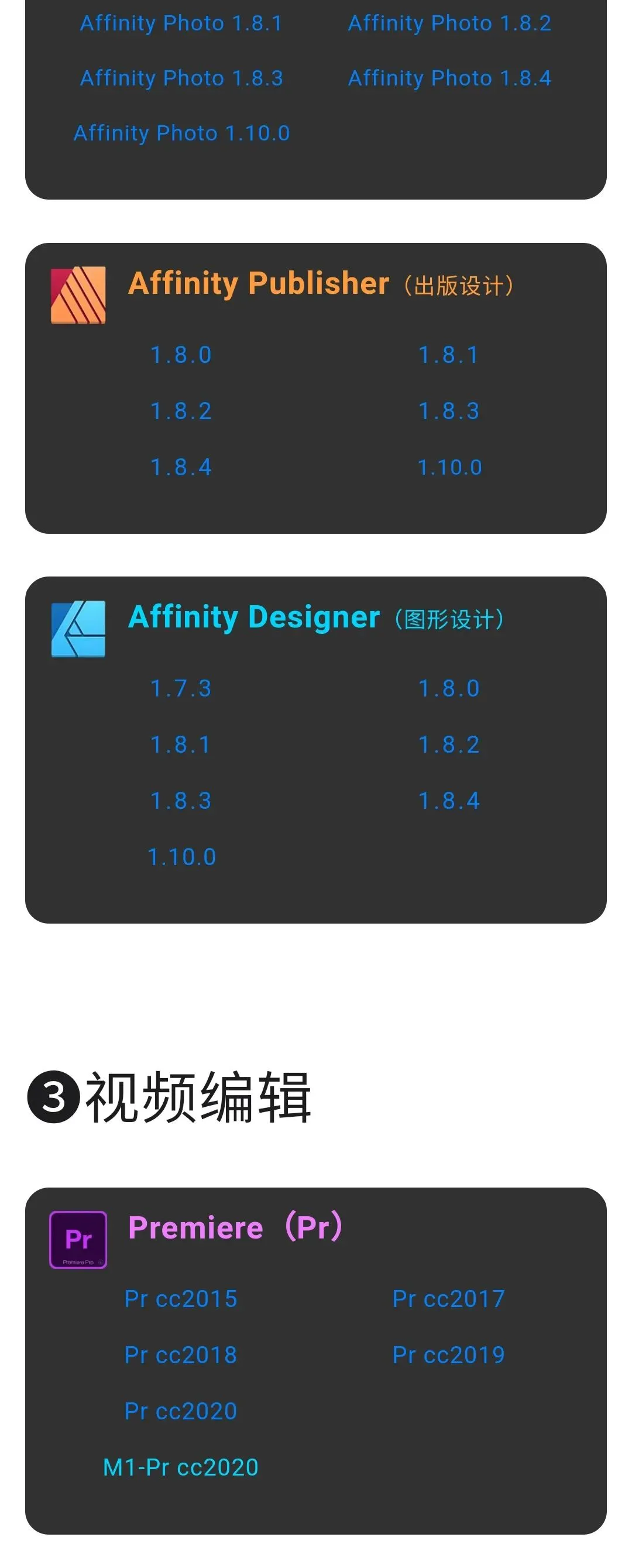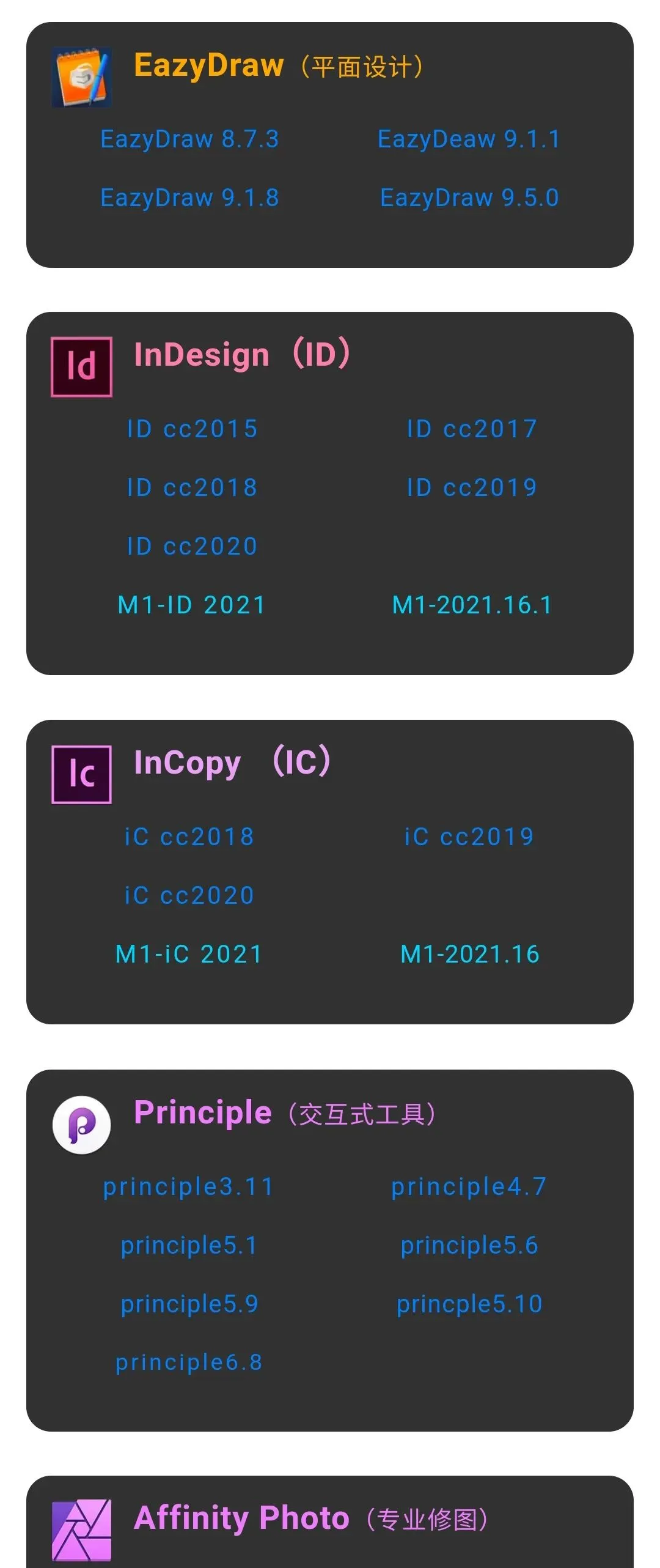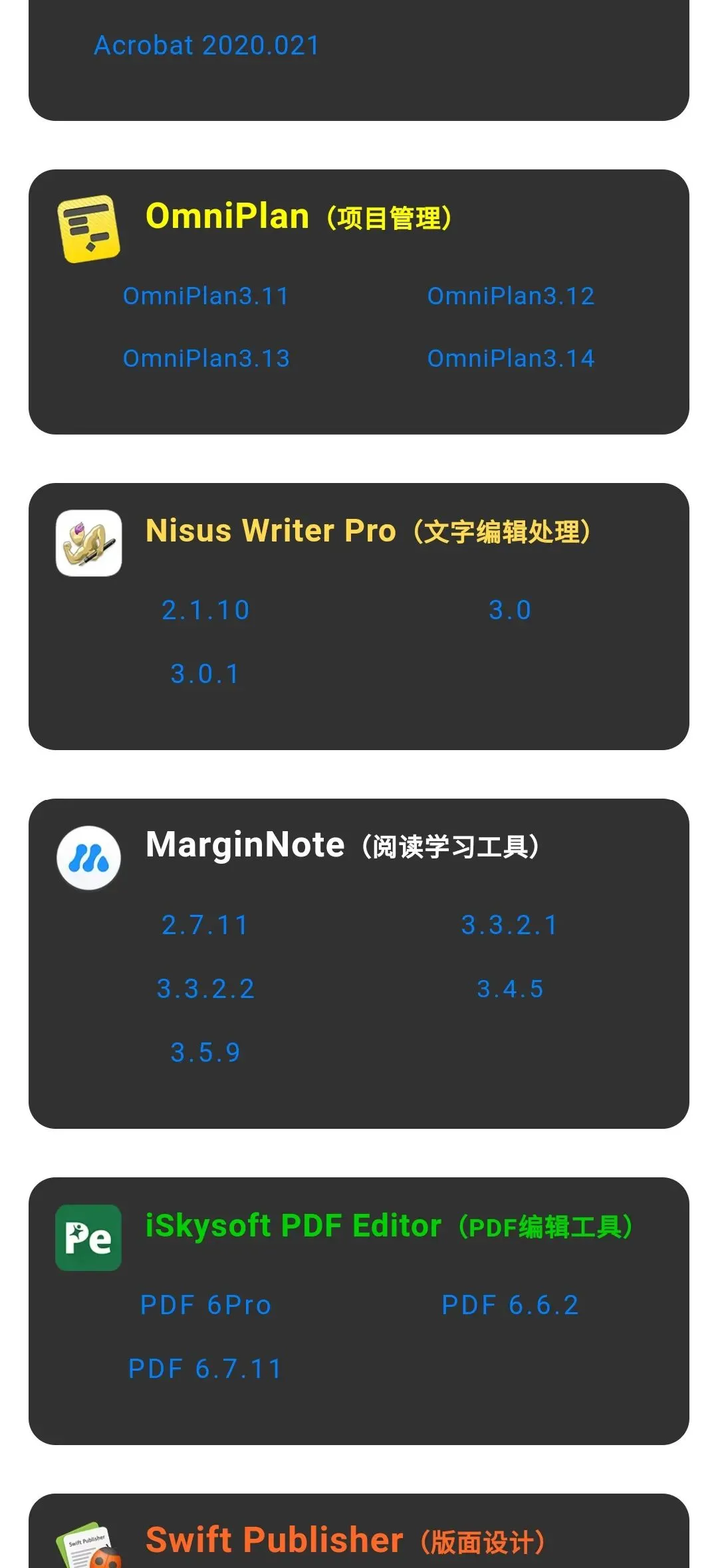 MAC系统-软件大全-免费下载 🔥终身会员限时抢占中 点击图片👇即可了解加入 以下软件为VIP会员专属免费下载 并附有详细安装教程,小白也能轻松安装 VIP会员请文末点击阅读原文下载 非会员,如需了解加入,请点击上图 说明:以上软件只需加入公众号会员即可获取,在会员群内搜“软件大全”即可跳转下载。 加入会员,所有资源免费获取 VIP会员请点击阅读原文,即可进入软件大全下载专区。