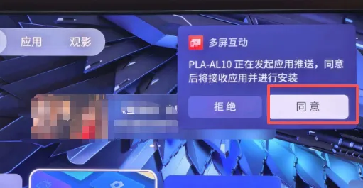 然后打开多屏互动,在工具里面找到应用推送,找到下载好的电视版本野草助手App,远程推送,此时电视上会弹出一个框,点击同意即可。