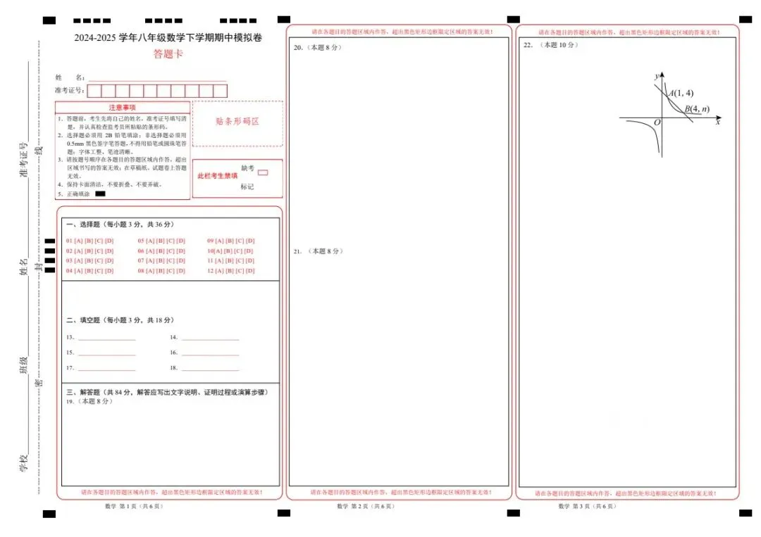 2026新八年级下册华东师大版数学期中模拟卷(答案+答题卡)完整可打印