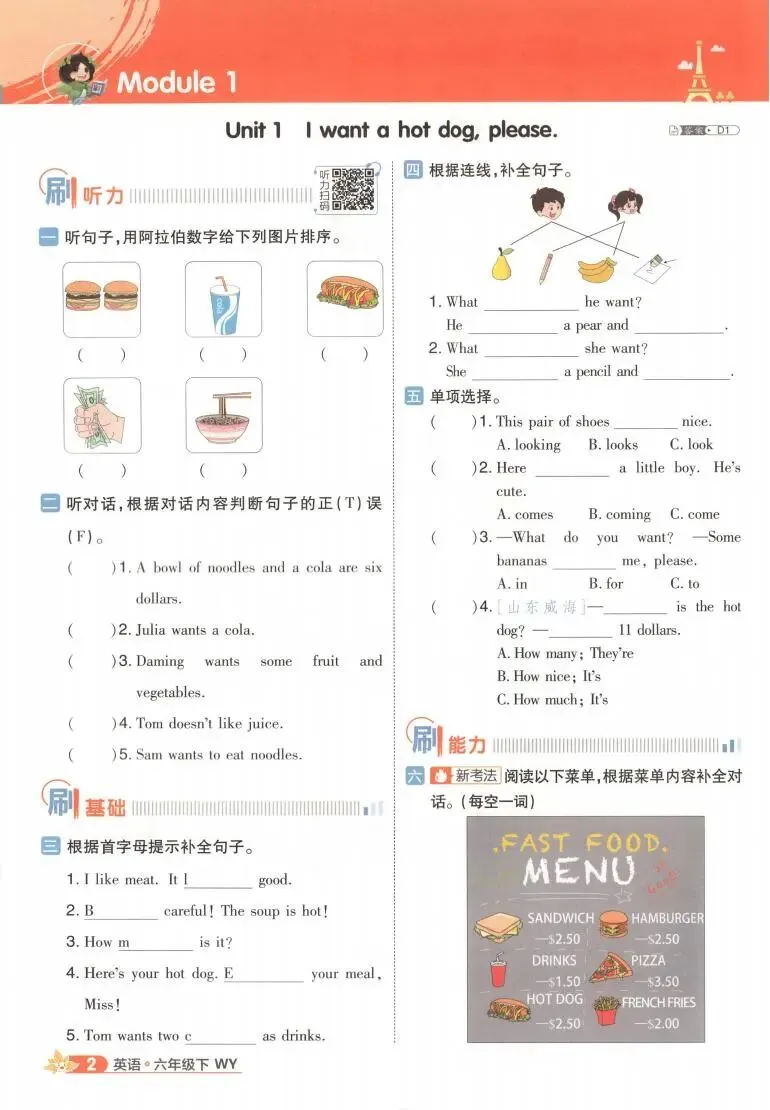 《必刷题》外研版英语小学5/6年级上下册/电子版可下载