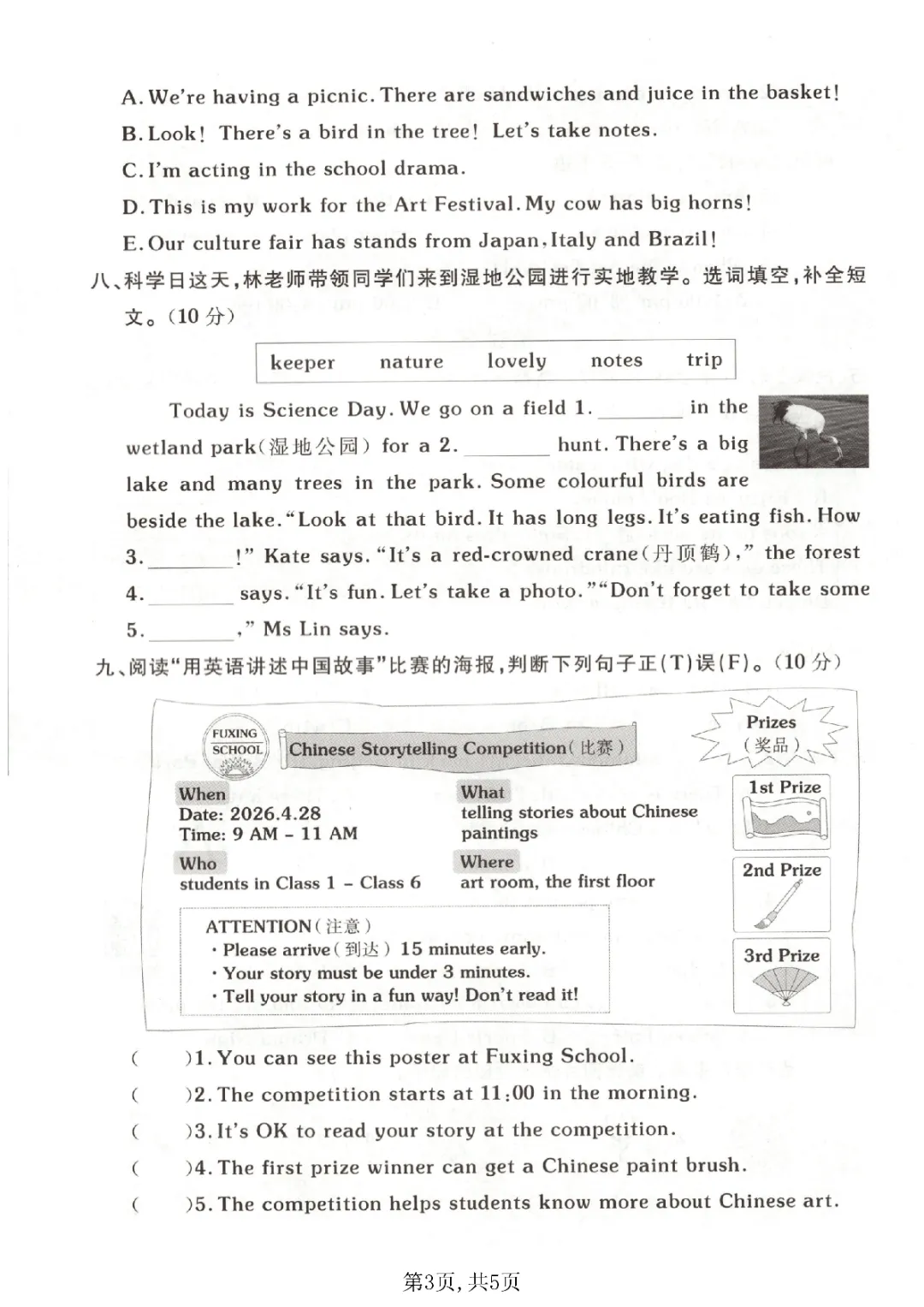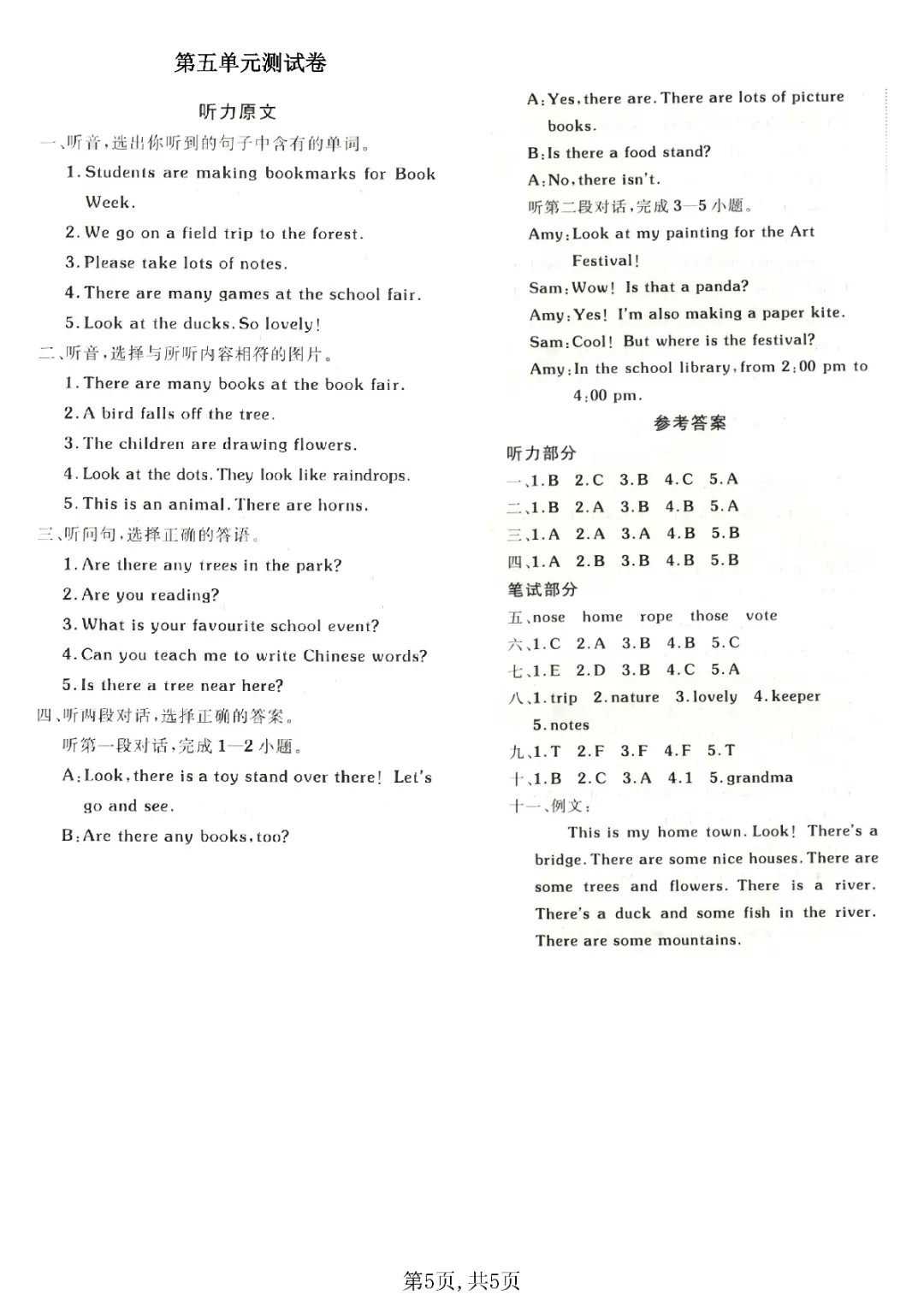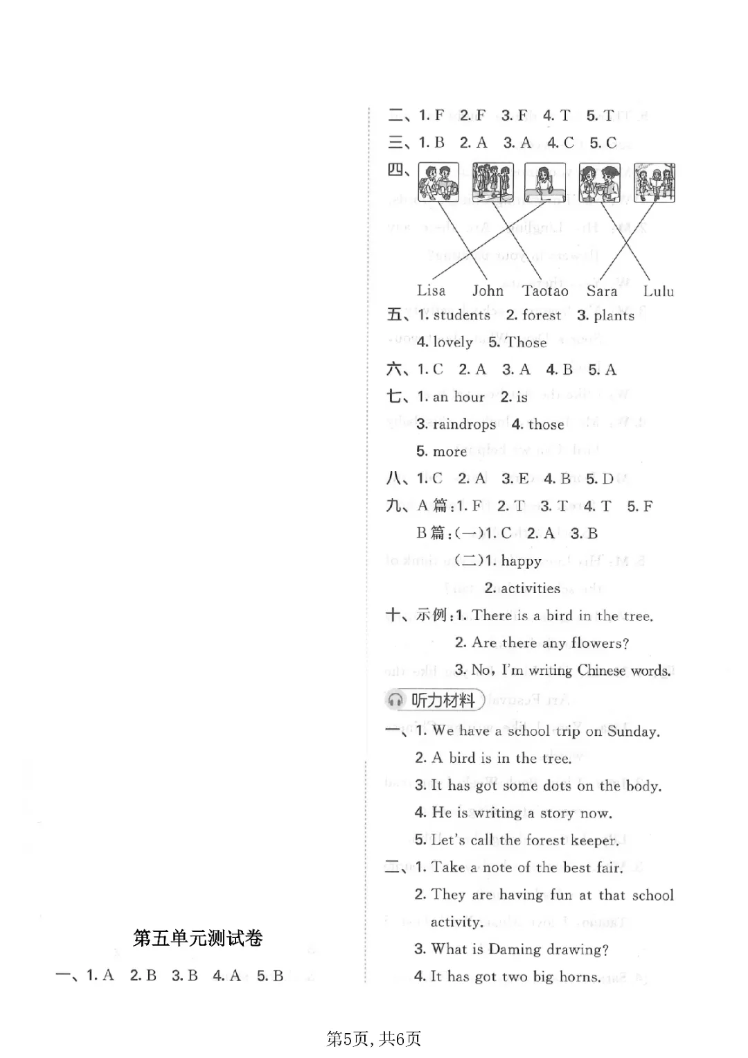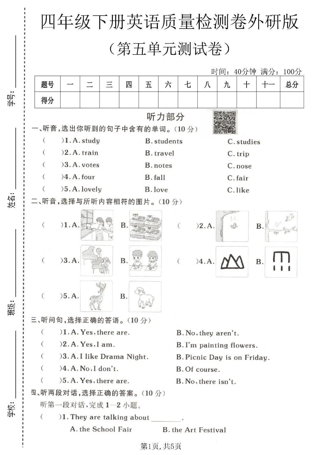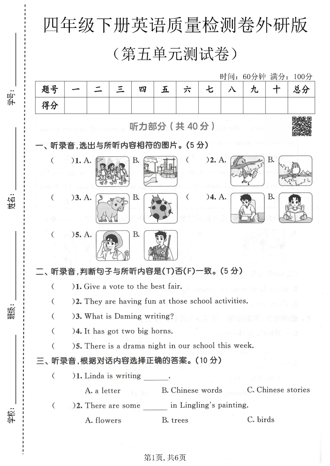 2026年春外研版4年级 (三起点)下册第五单元检测卷(内附答案),课时练、单元、期中、期末学习资料,可打印