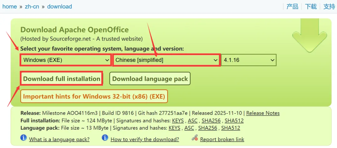下载地址:https://www.openoffice.org/zh-cn/download/