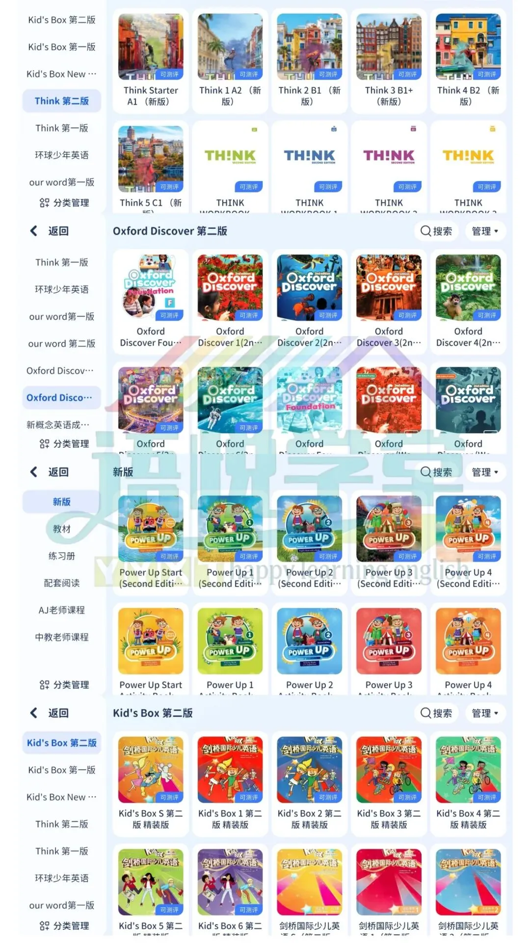 Power Up, Think,Oxford Discover, 剑桥国际少儿英语, 新概念等等。