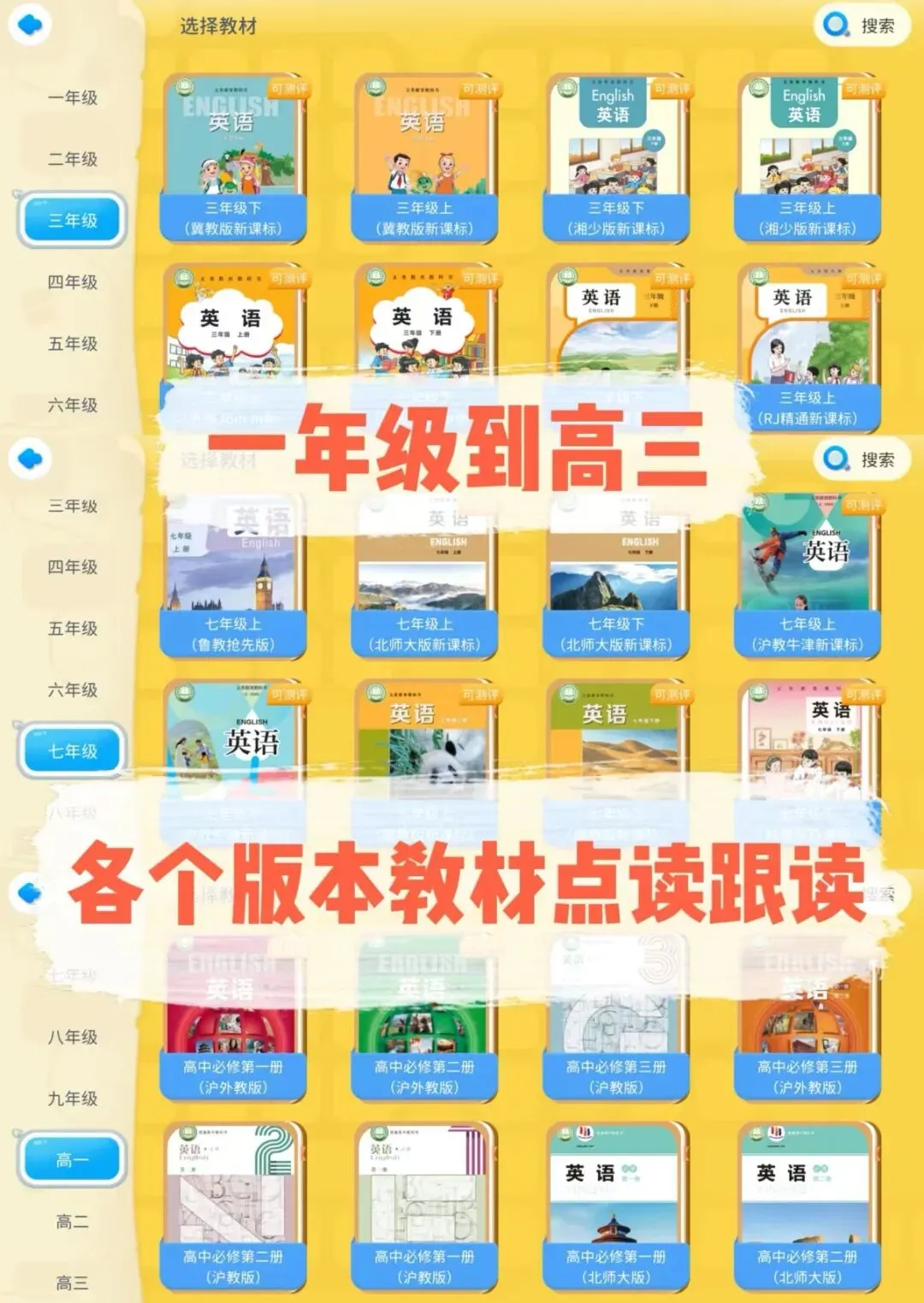 一年级到高三不同版本校内英语教材,原版音频,点读,跟读,翻译,背单词,练习题等等