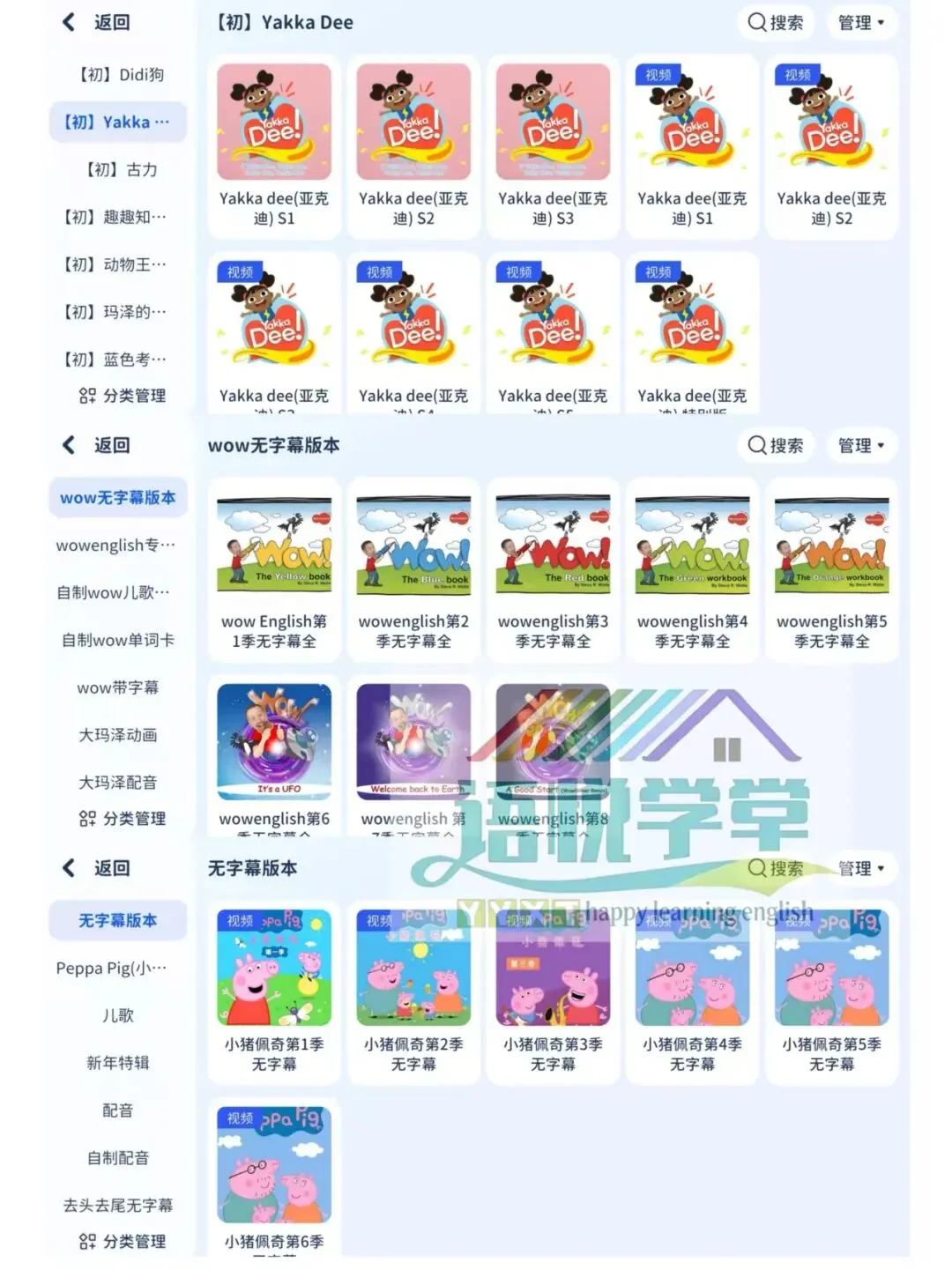 Yakka Dee, Little Fox全部,Wow English,Big Muzzy, 蓝色小考拉,小猪佩奇,布鲁伊,动物街,猜猜我有多爱你等等,应有尽有不定期更新。