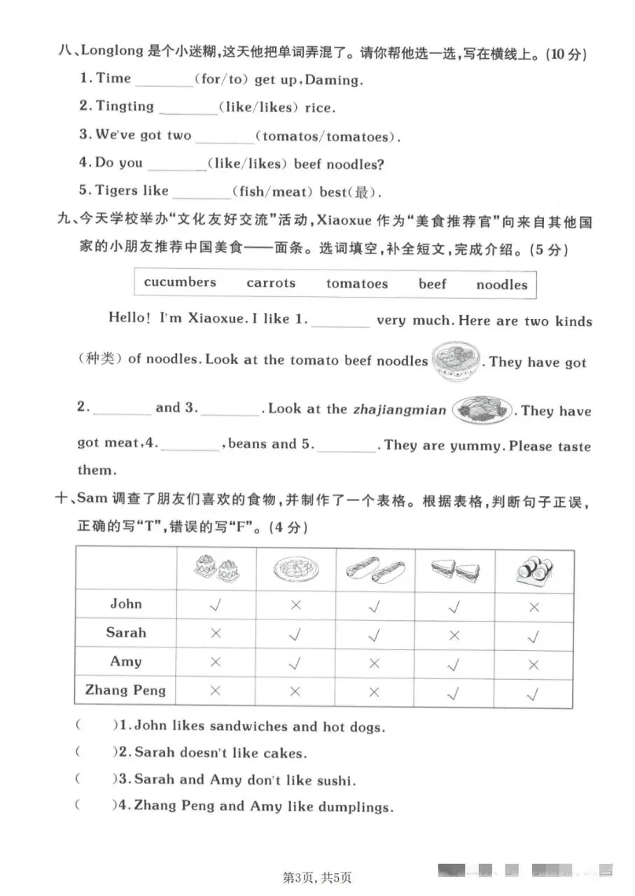 八、1. to 2. likes 3. tomatoes 4. like 5. meat