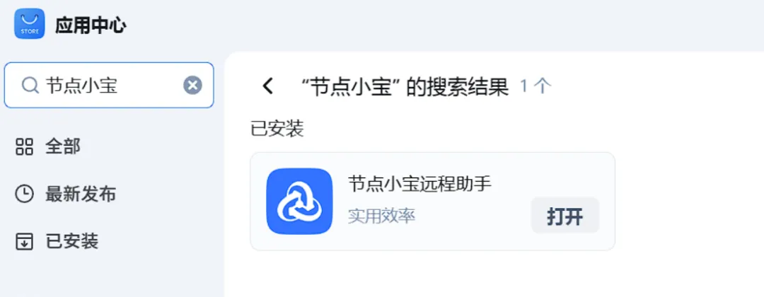 2. 找到应用中心,搜“节点小宝”,直接搜关键词就出来,比手机找APP还简单。