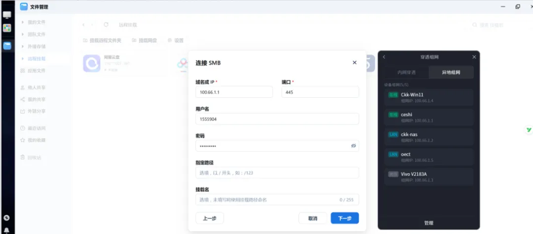 6. 反向操作,在NAS B上挂载NAS A的文件夹,实现双向互通,达成“文件自由”。
