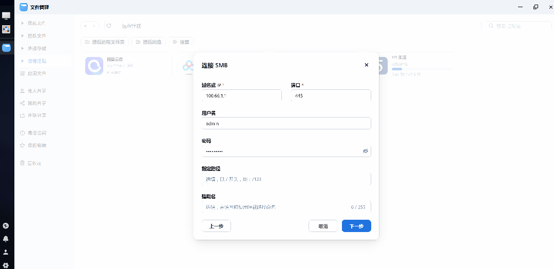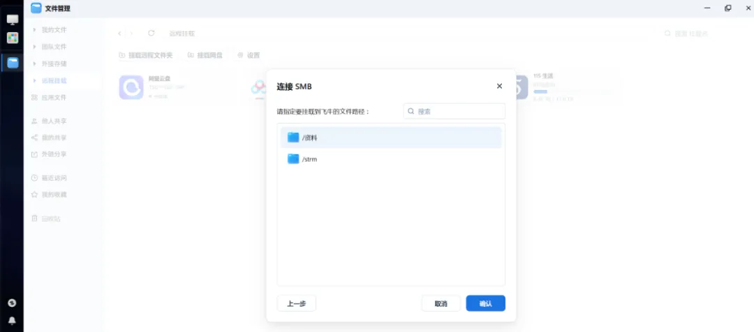 1. 在NAS A上打开文件管理,侧边栏找到远程挂载,点击挂载远程文件夹。