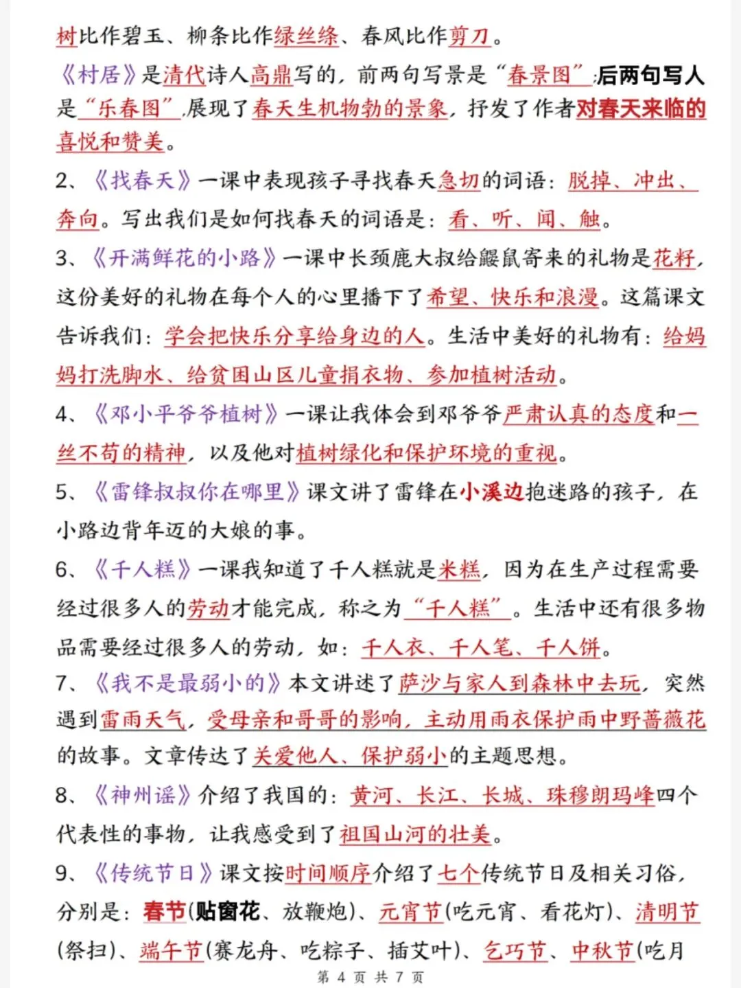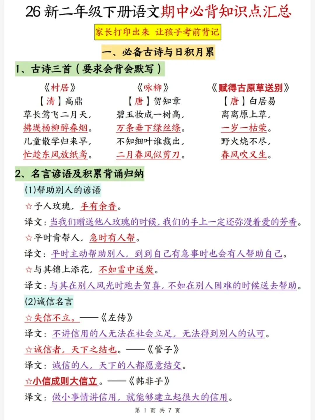 今天给大家分享:26春二年级下册语文期中复习知识点汇总,一共7页。