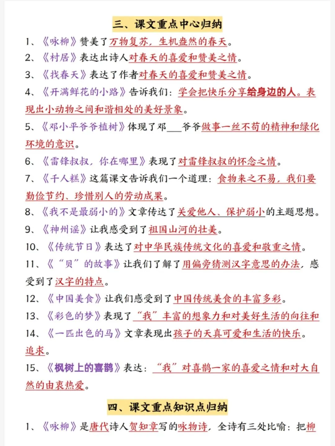 26春二年级下册语文期中复习知识点汇总(电子版可打印)