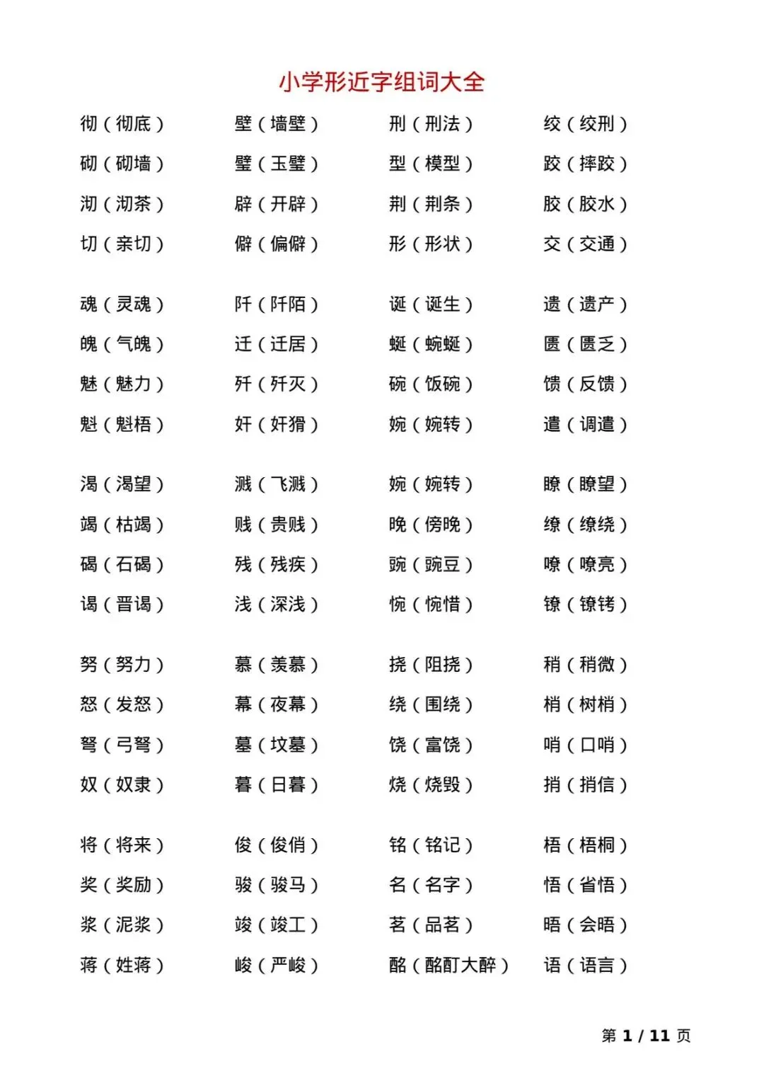小学语文形近字组词大全,限时分享,网盘永久保存,电子版可下载打印,免费领取.