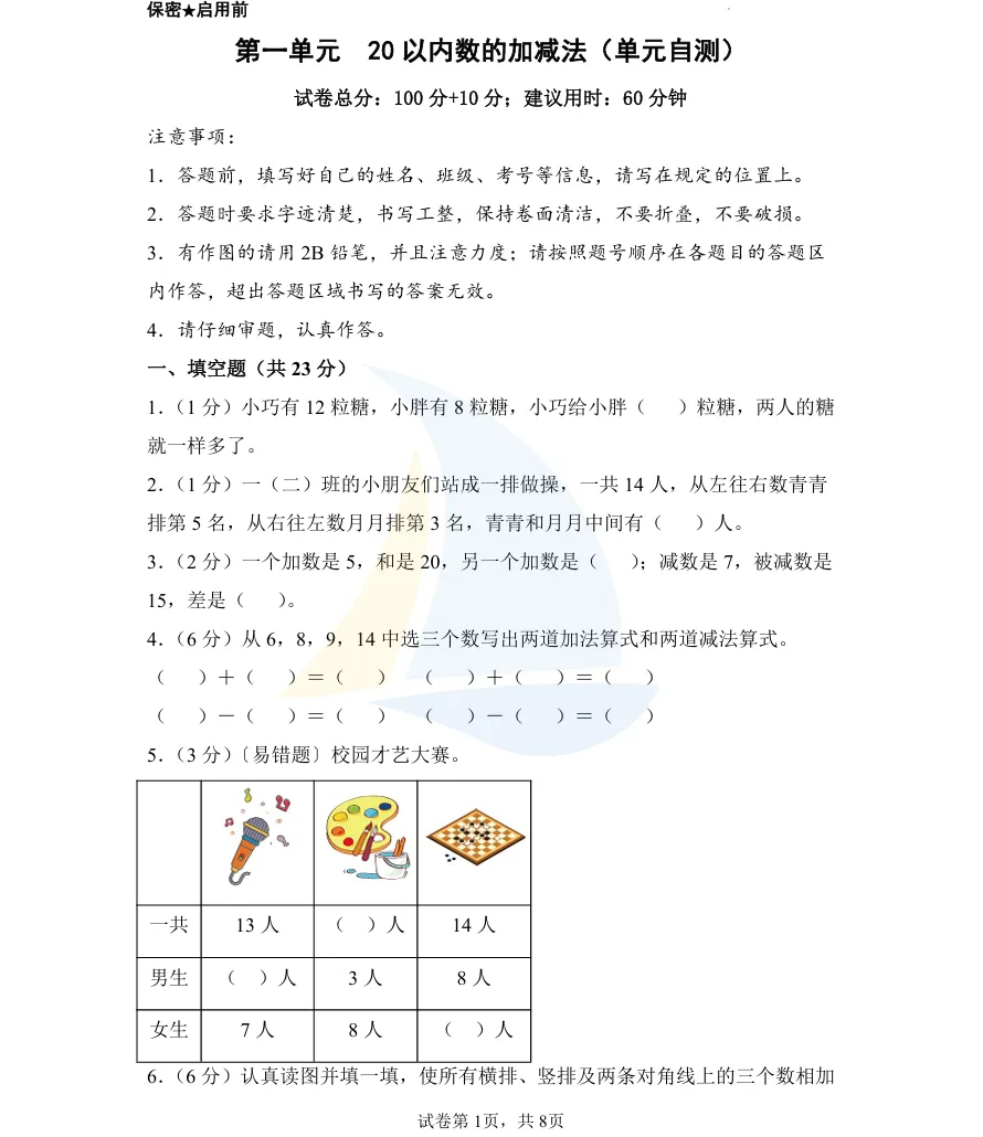 ⭐️【 1-5年级】单元自测卷 ⭐️