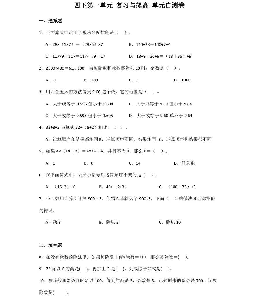 小学阶段,每个单元的学习都是知识积累的关键一步。及时自测技能巩固课堂所学,也能帮孩子养成良好的学习习惯。
