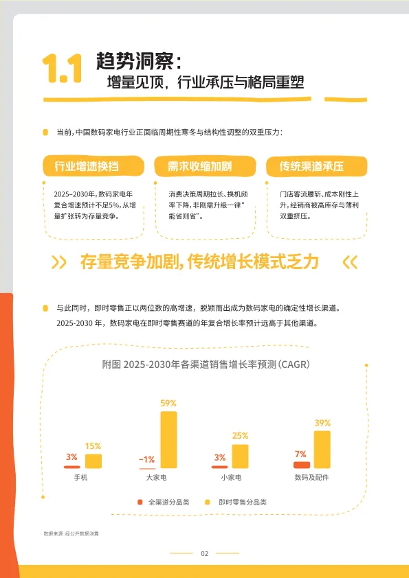 本方案系统阐述了美团闪购如何助力数码家电品牌在即时零售赛道实现增长。报告指出,行业正从增量竞争转向存量竞争,而即时零售是确定性增长渠道。核心策略是围绕五大高需场景(换季、礼赠、夜间、出行、新品)打造“场景爆品”,并通过模式、服务、营销、AI四大“加速器”赋能品牌,构建从需求洞察到能力沉淀的系统化增长路径,最终实现从“单点爆款”到“生态增长”的跨越。