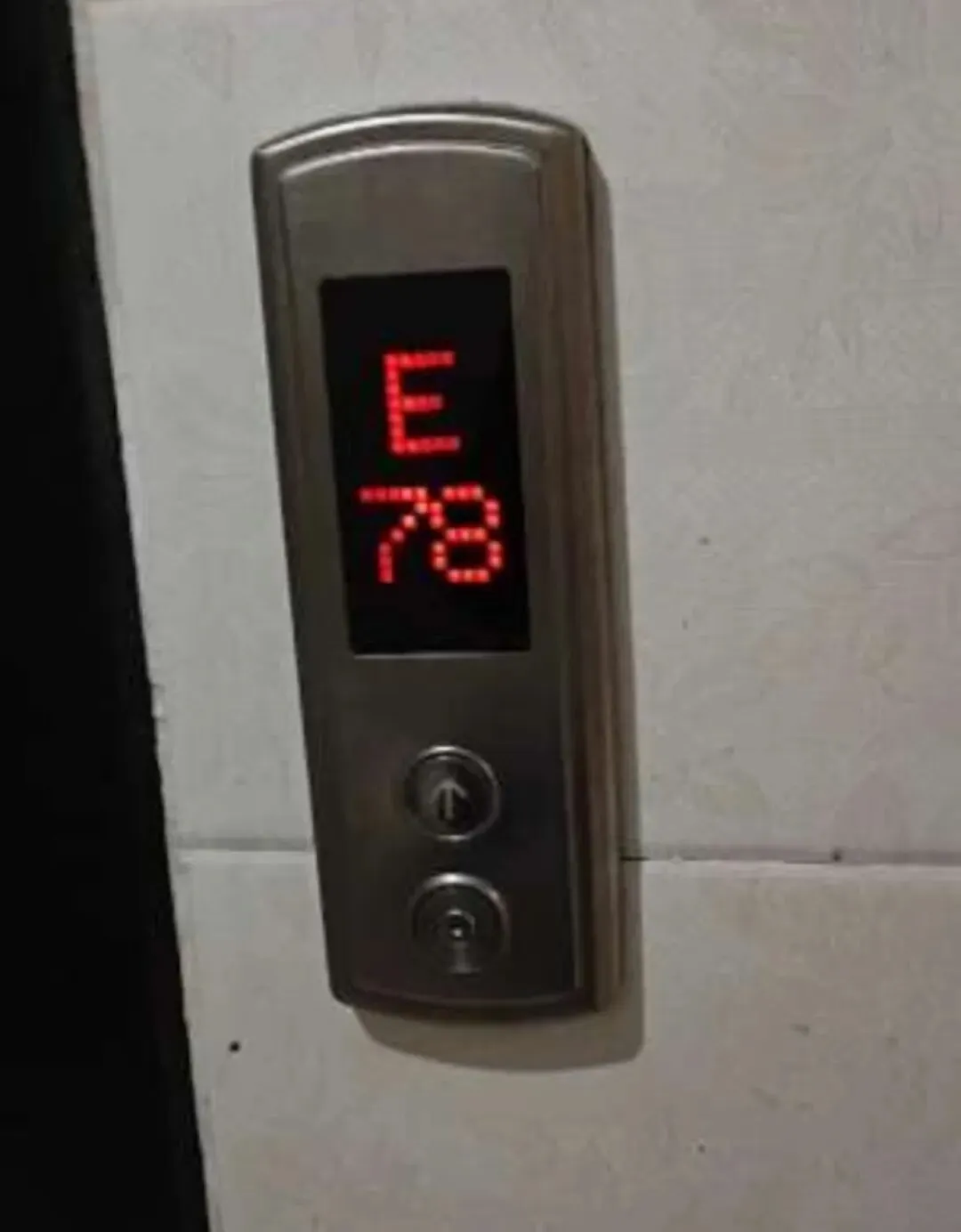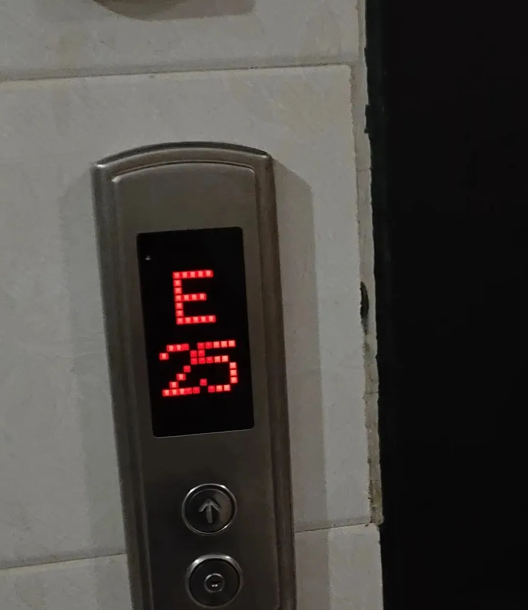 电梯外呼面板显示 E25,是电梯故障报警代码,不是楼层数,代表电梯控制系统检测到了异常,触发了保护停机。