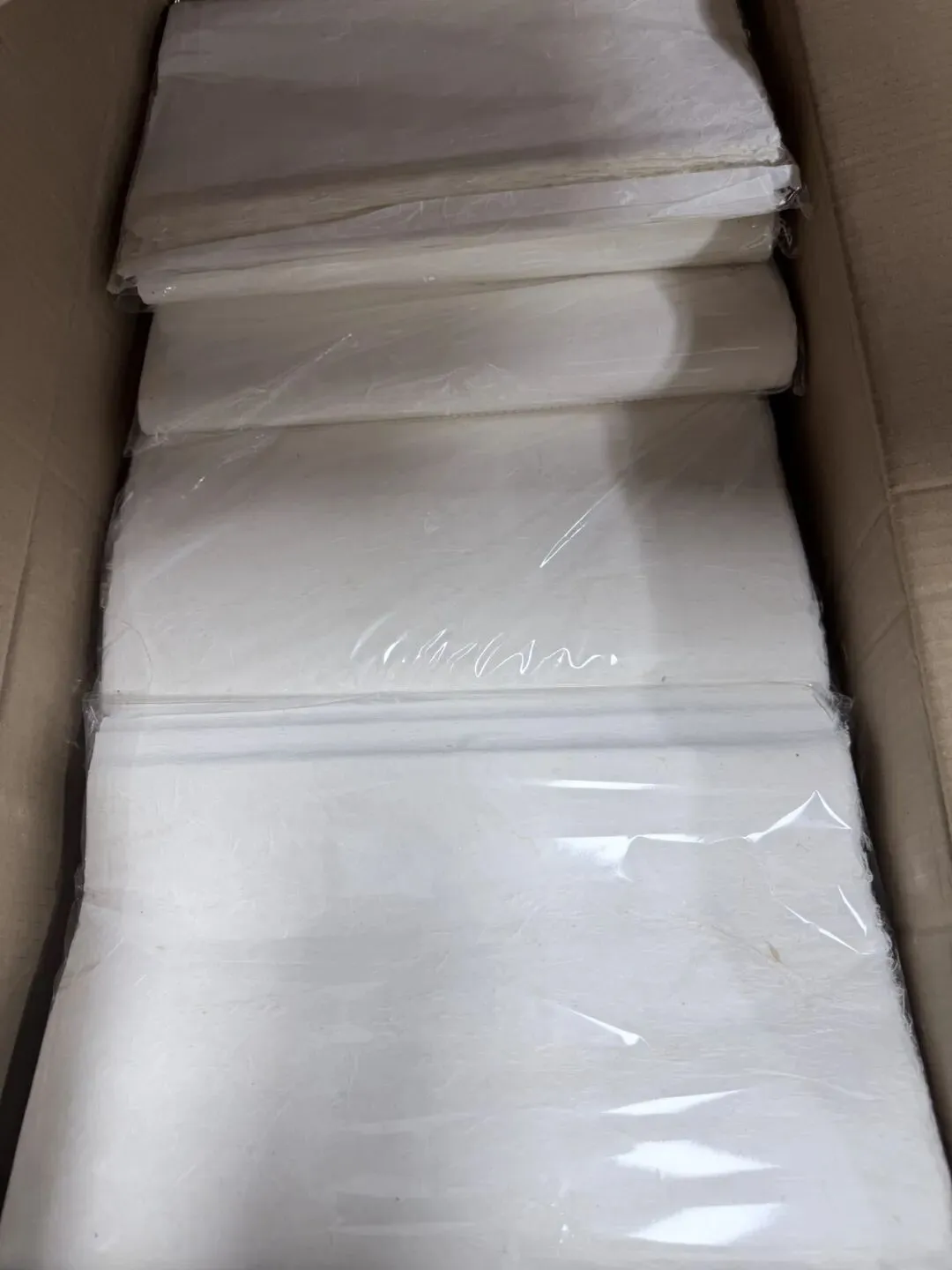 前几次订锅开始我就换了这个纸包皂,清水云龙长纤维宣纸。纸张单看的颜值比我老纸更好,成本也更贵,我想着要给包装升级一下来着,而且我买东西喜欢“批发”,所以感觉把我打皂生涯要用的可能都买回来了🥲
