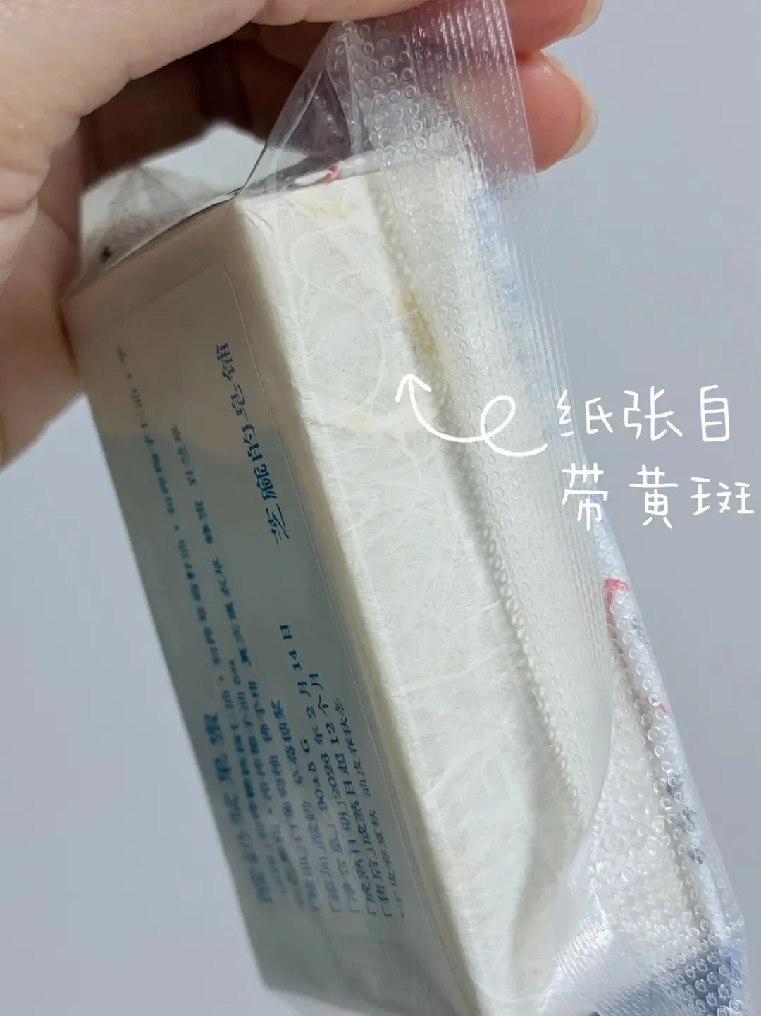 后来有一天,皂友跟我说这个纸上带黄斑,她看到了以为皂坏了,拆开发现原来是纸上自带的