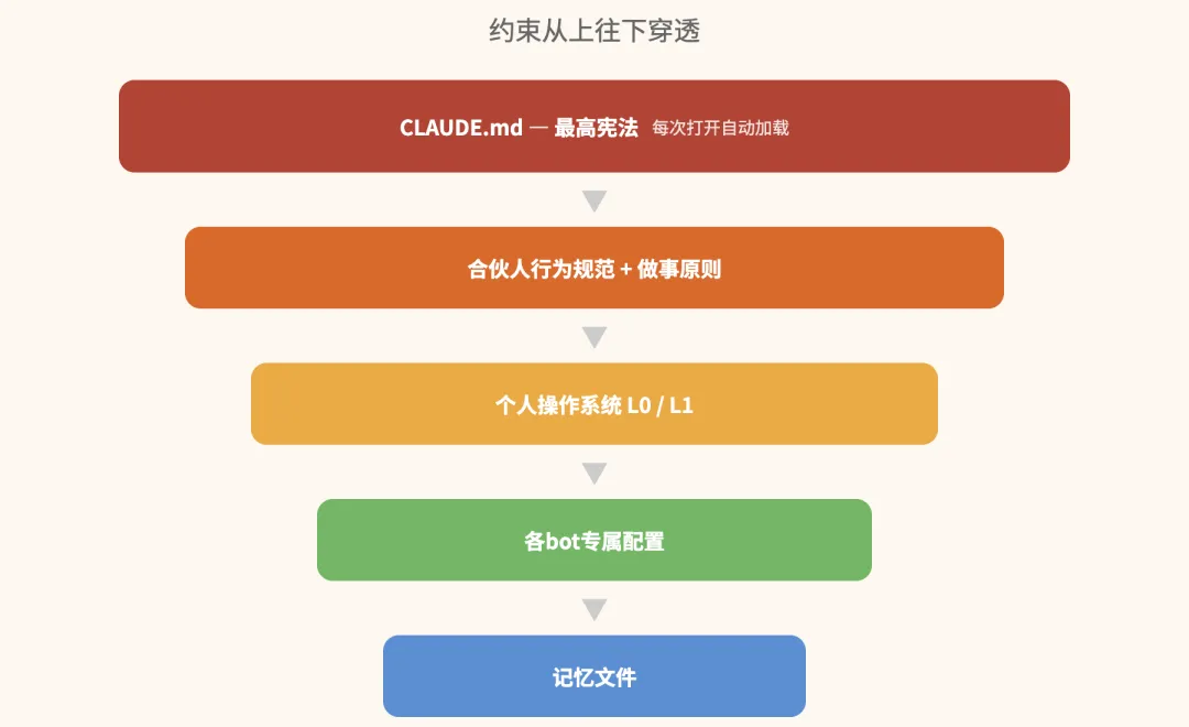 有了个人操作系统还不够。AI每次醒来,不可能读完你所有的文件。所以你需要一个从上往下穿透的规则体系。