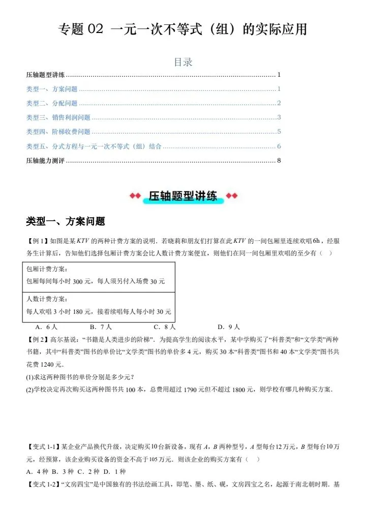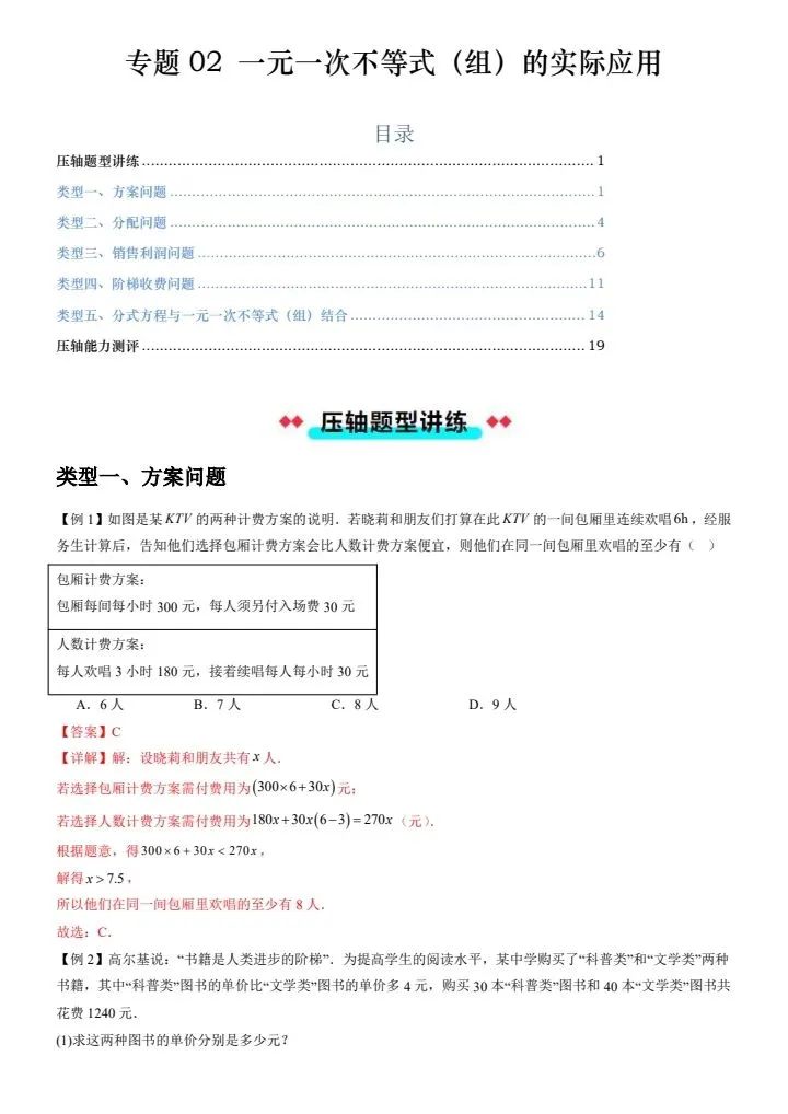 今日分享2026春新七年级下册数学沪教54版期中压轴:一元一次不等式(组)的实际应用(含答案)完整电子版可打印!高清可打印,每日轻量练习,拒绝无效刷题,用系统化资料筑牢学科基础,让假期成为提升的黄金期,开学轻松领跑。