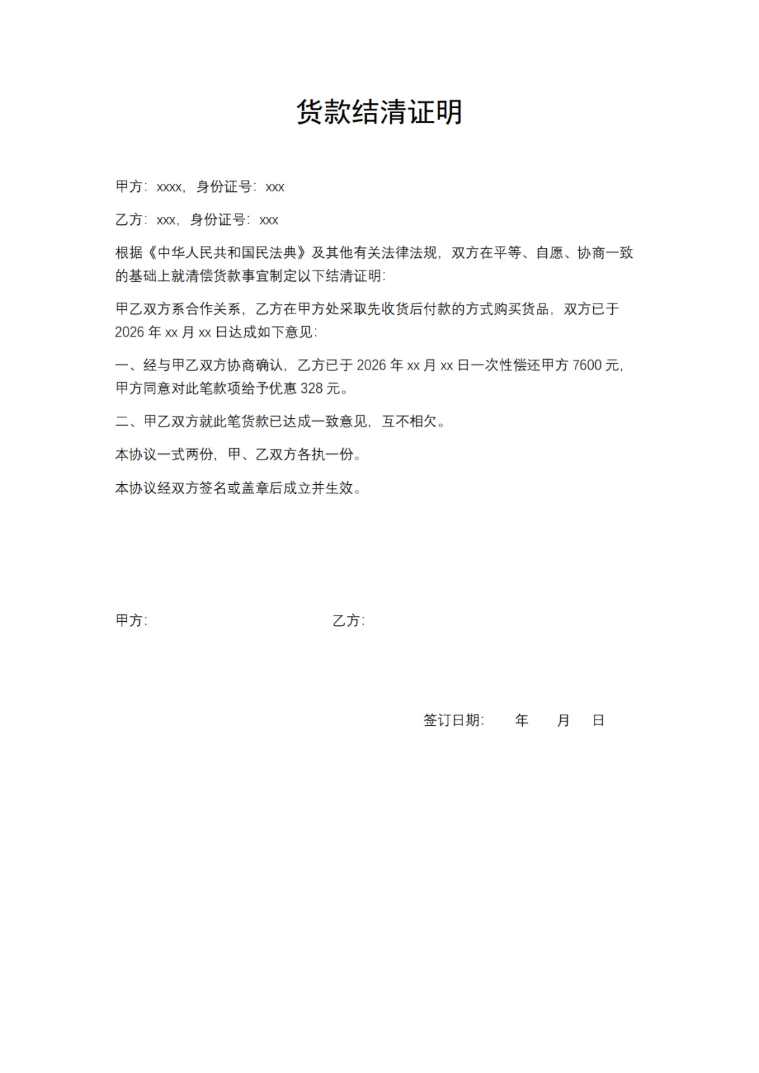 货款结清证明模板,WORD文档电子版,可免费下载打印