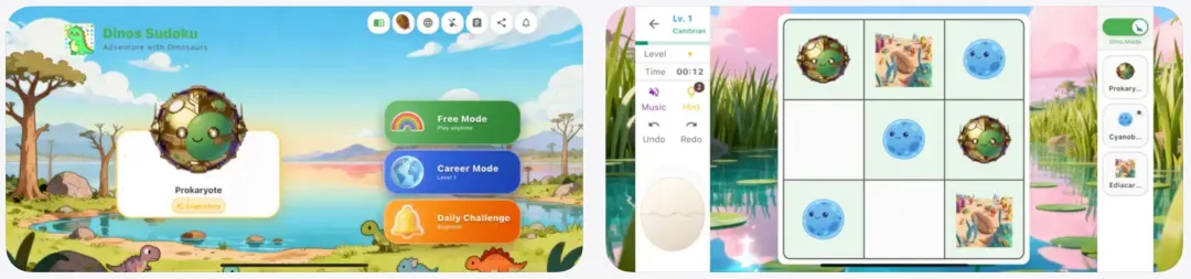 简介:一款专为儿童设计的益智游戏,将经典数独与恐龙主题完美结合,让孩子在游戏中轻松学习数学逻辑。
