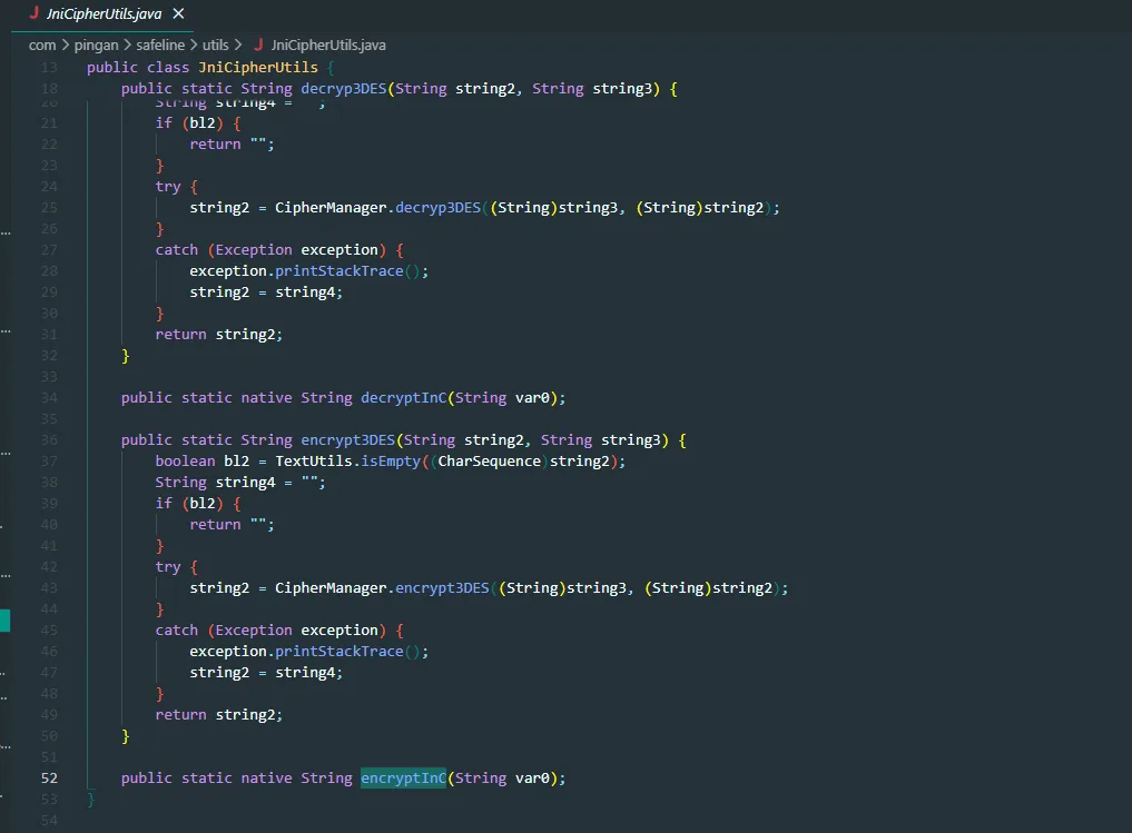 算法特征:先经过 PKCS5 填充(填充到8字节对齐),使用 3DES-ECB 加密模式,然后 Base64 编码。根据该密钥通过AI生成独立的解密脚本。