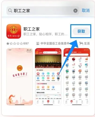 方式二:在安卓系统和IOS系统手机应用市场搜索“职工之家”即可下载。