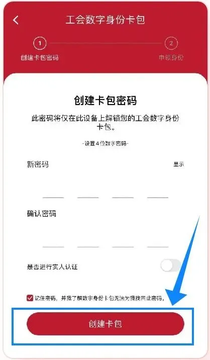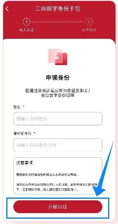首次登录需要进行创建“工会数字身份卡包”,进行实名认证。