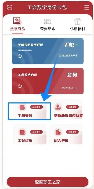 完成手机号绑定和工会数字身份卡包的注册。通过实名认证后,可申领工会数字身份。