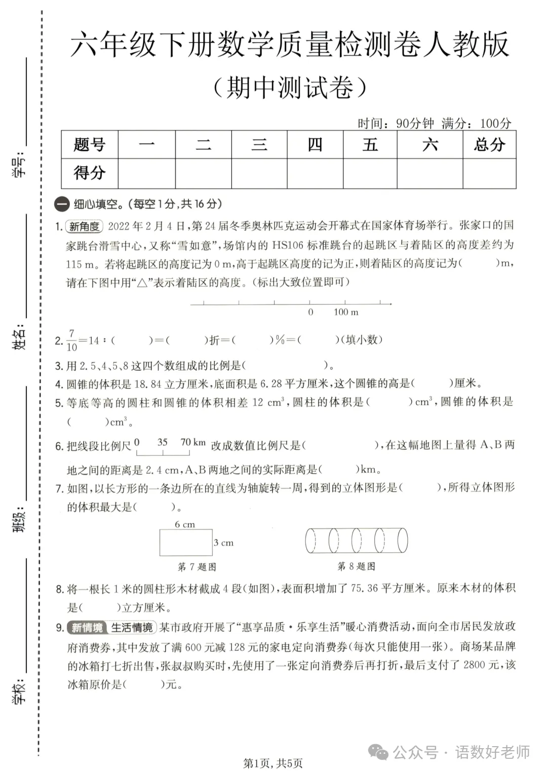 「六年级(下)数学 第一单元测试卷《人教版》.pdf」