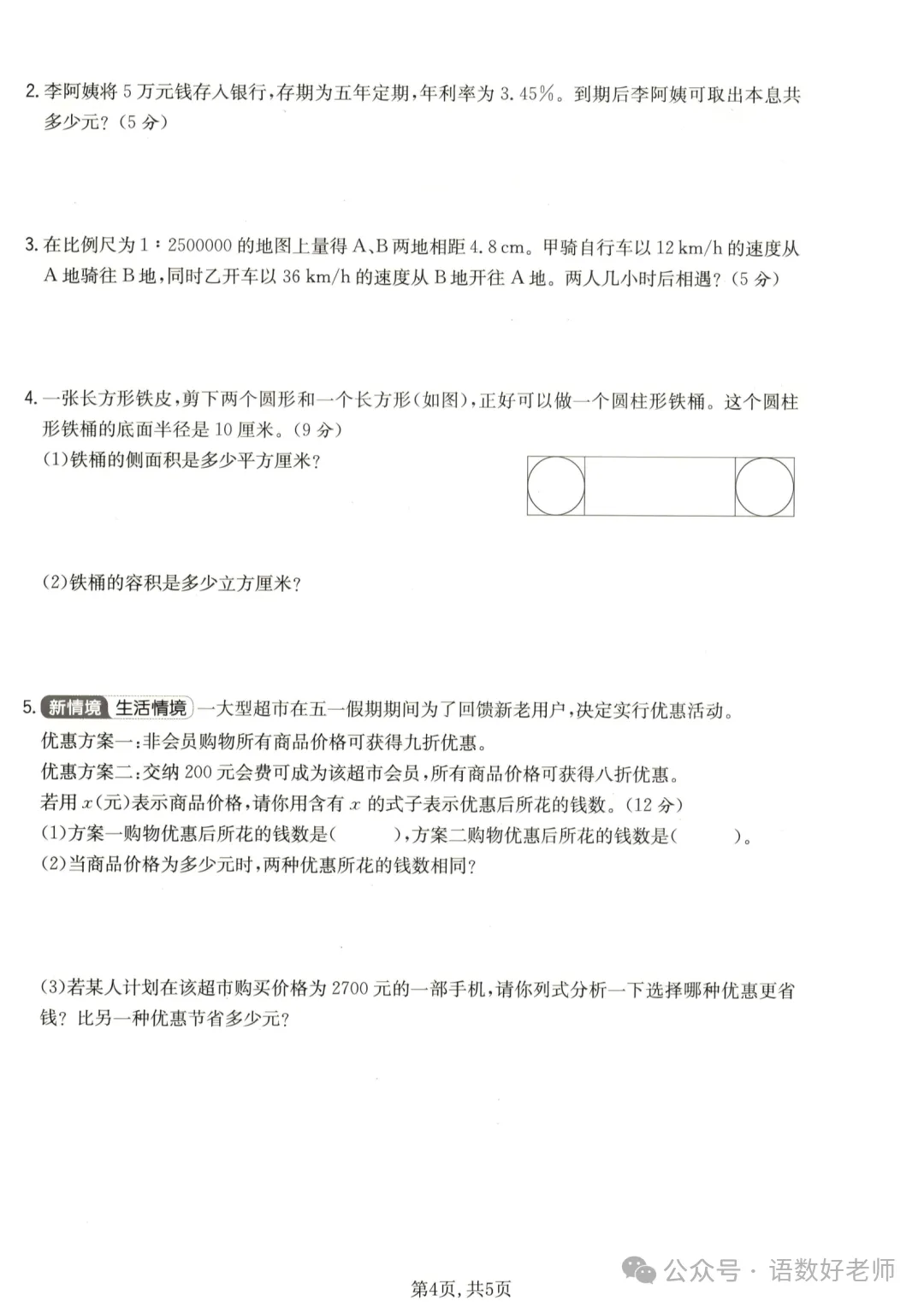 六年级下册数学《期中试卷》,可下载打印附有答案