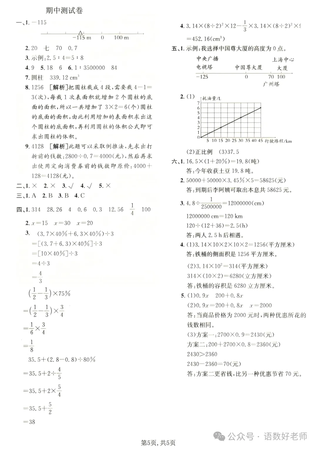 「六年级数学下册北师版26春《实验班提优大考卷》答案.pdf」