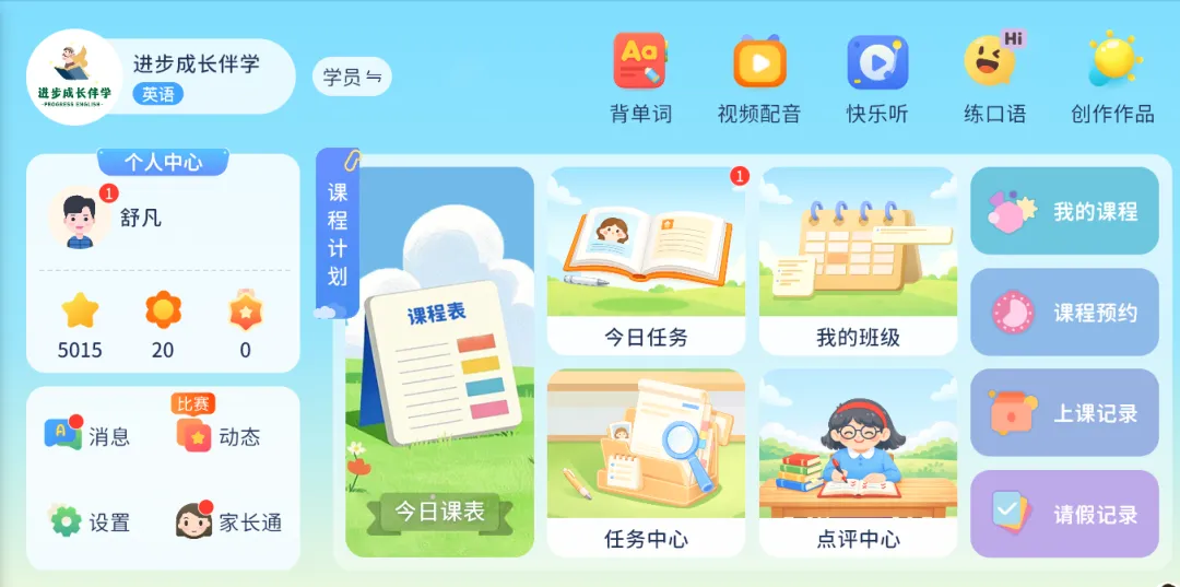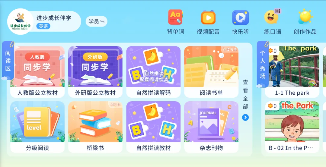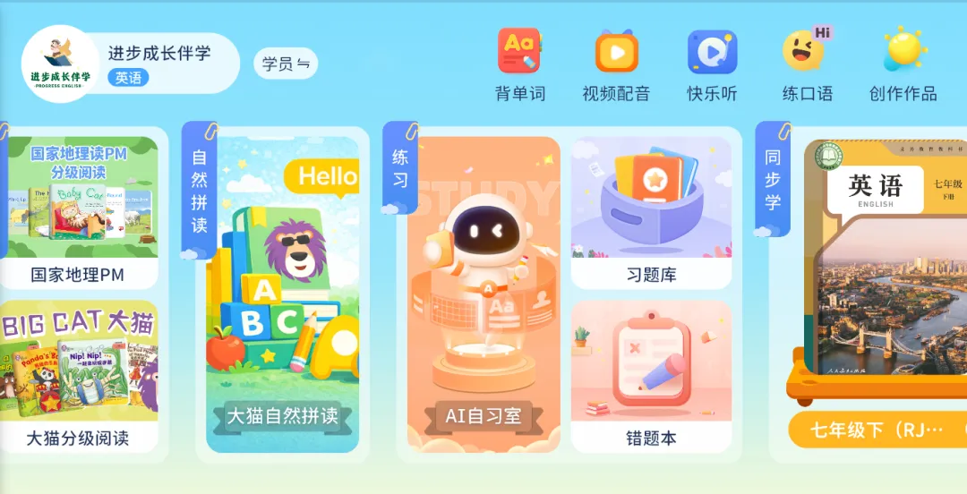 在进步成长伴学App里,内容涵盖单词、课文、语法、阅读等完整学习体系,难度循序渐进,适合不同基础的孩子稳步提升。
