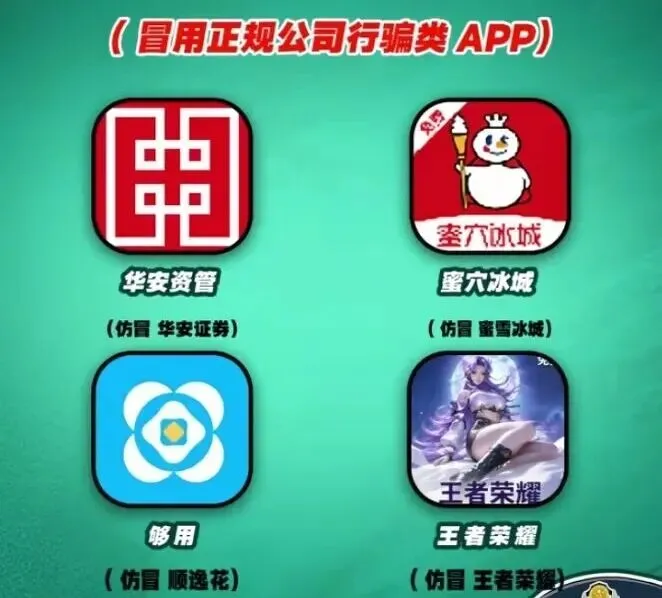 另外,下面这几款 APP 冒用正规企业名称进行诈骗,大家在下载前一定要仔细核对,千万不要被相似名字迷惑。