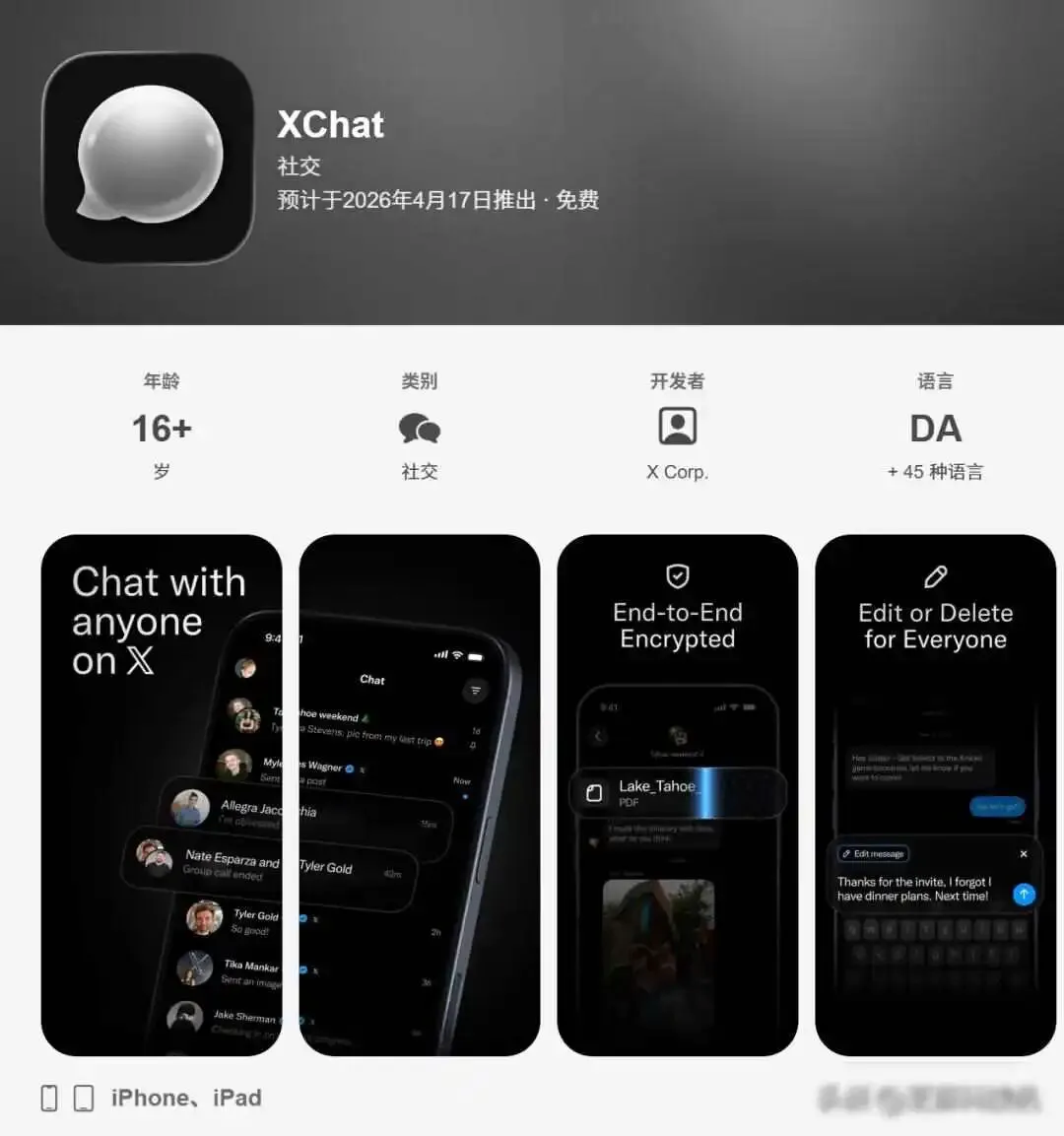 4月17日,马斯克的X平台要推出一个名叫XChat的新聊天软件,它先在苹果App Store向全球上线,安卓版本目前还没确定发布时间,这次比较特别的是,这个软件支持简体中文,还悄悄在中国大陆的App Store上架了,过去X平台基本不对中国用户开放,这次突然有了变化,很多人以为这是“解封”的信号,但实际上情况并不是这样。