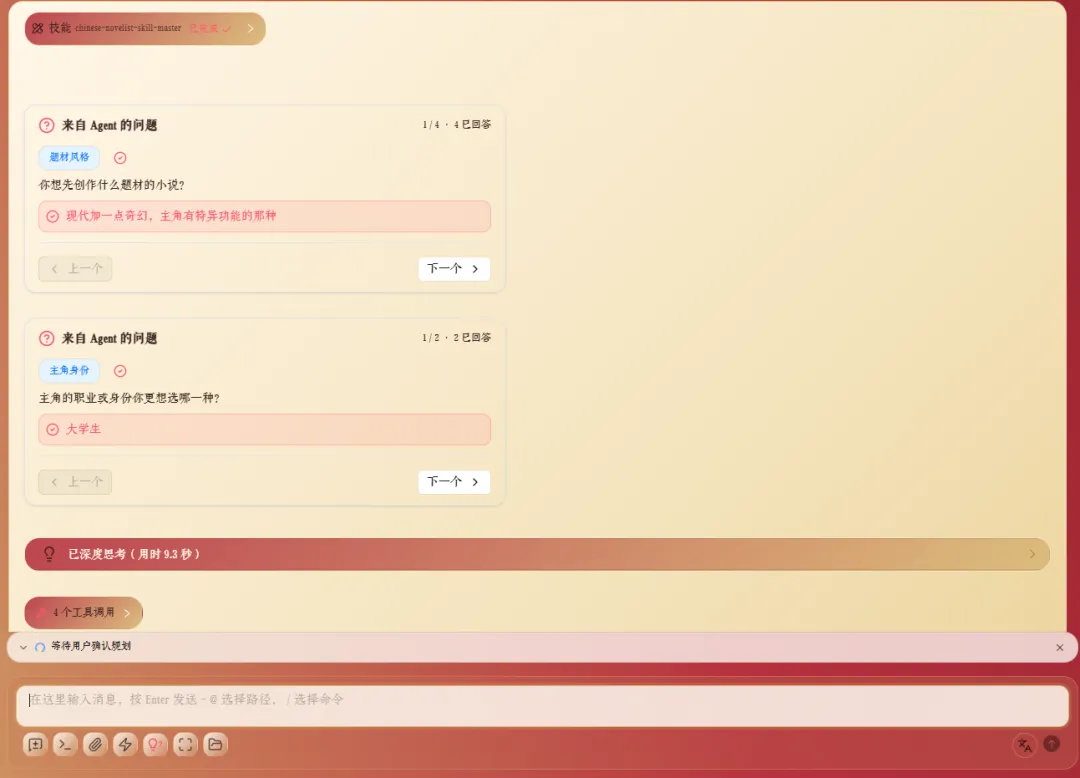 这点跟网上那种扔一堆 Skills、给个方向就自动往下写的路子不太一样。我之前在一些小说兴趣群里看到过一句话,挺认同的:有些 Skills 更像是写给作者自己看的,不是写给读者看的。Author 至少不是这个方向。