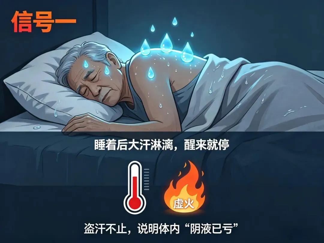 有些人睡到半夜一身大汗,枕头被子都湿透,可一睁眼,汗马上停了。这种情况中医叫“盗汗”,多半是体内阴液不足、虚火内生,把津液“烤”了出来。