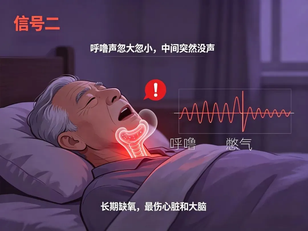 很多人误以为打呼噜是睡得香,其实大错特错。如果呼噜声时断时续,突然没声音了,憋好几秒才猛地喘上来,这很可能是“阻塞性睡眠呼吸暂停”。中医认为多与痰湿太重、气机不通有关,咽喉被堵住了,气道受压。