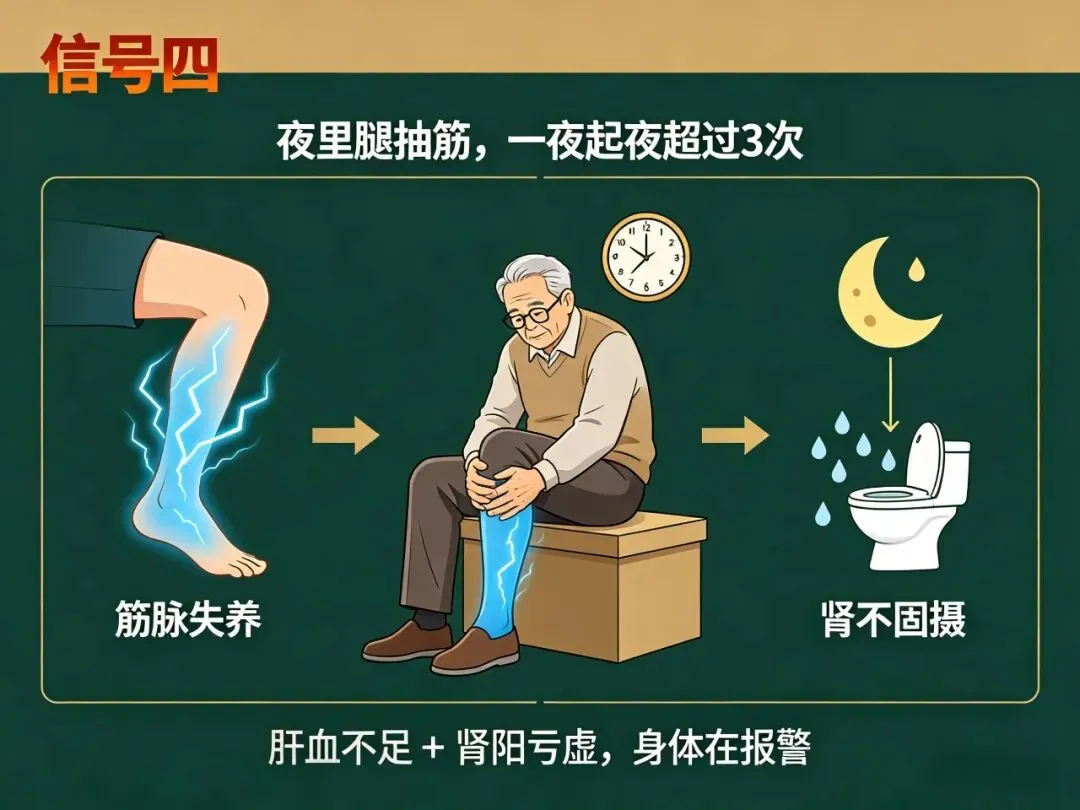 腿抽筋不光是缺钙,中医看来大多是肝血不足,筋脉得不到滋养;夜尿多也不全是肾虚,但多半与肾阳不足、肾气不固有关,肾脏存不住水了。