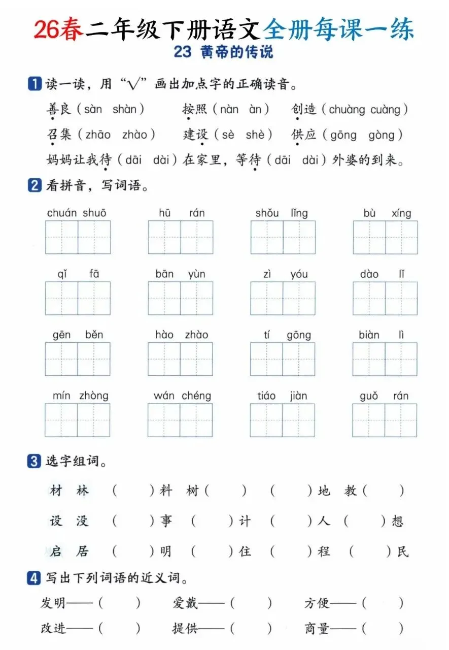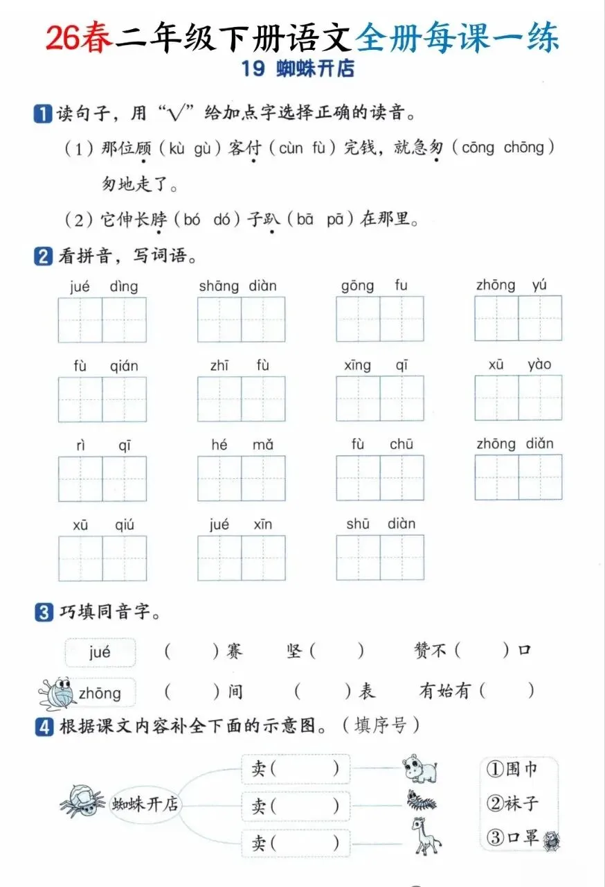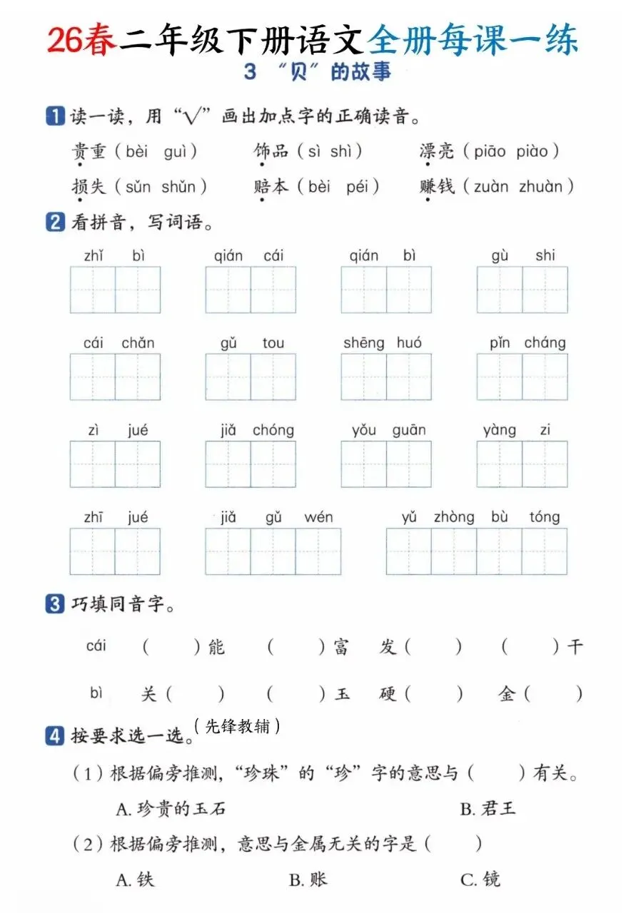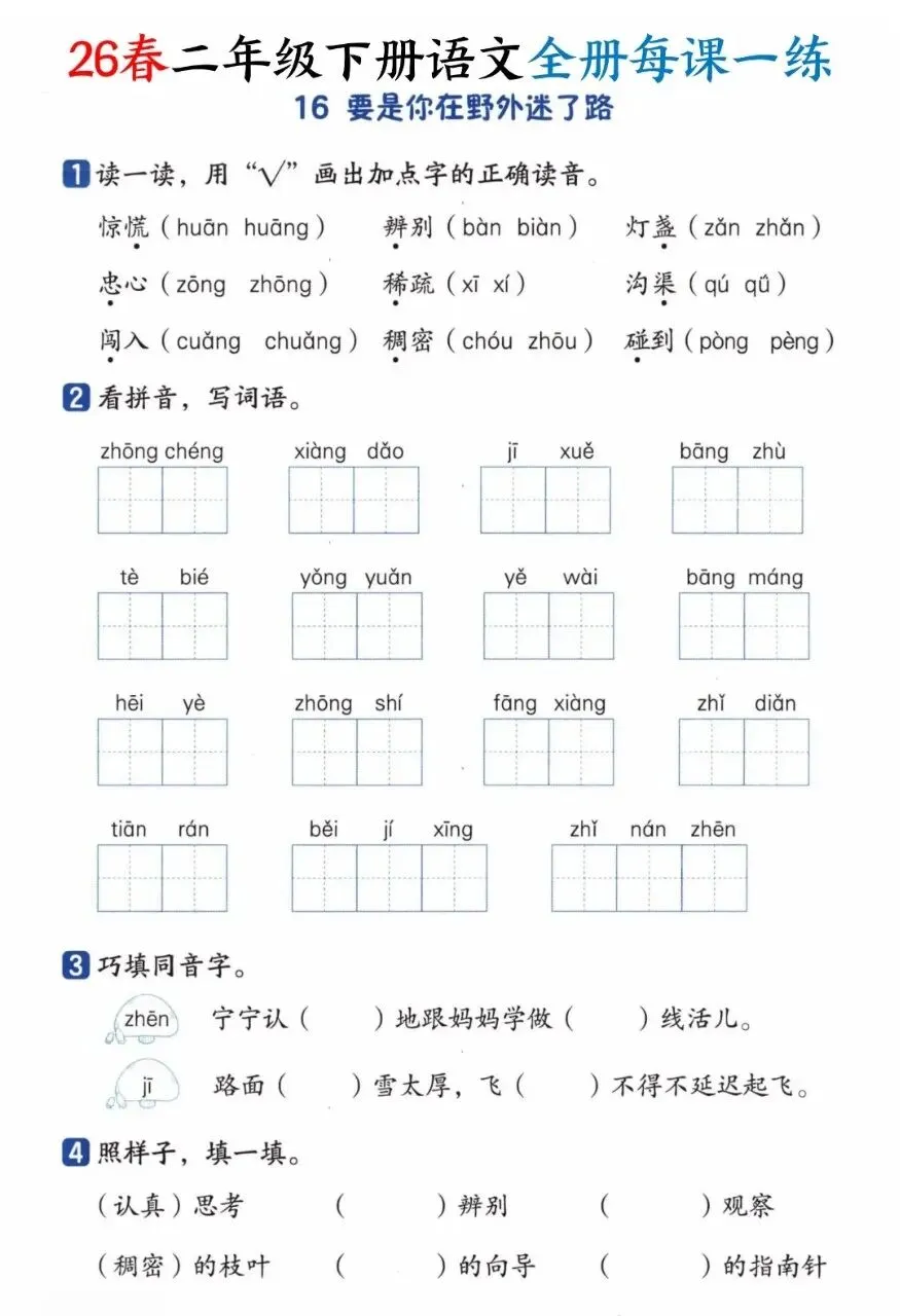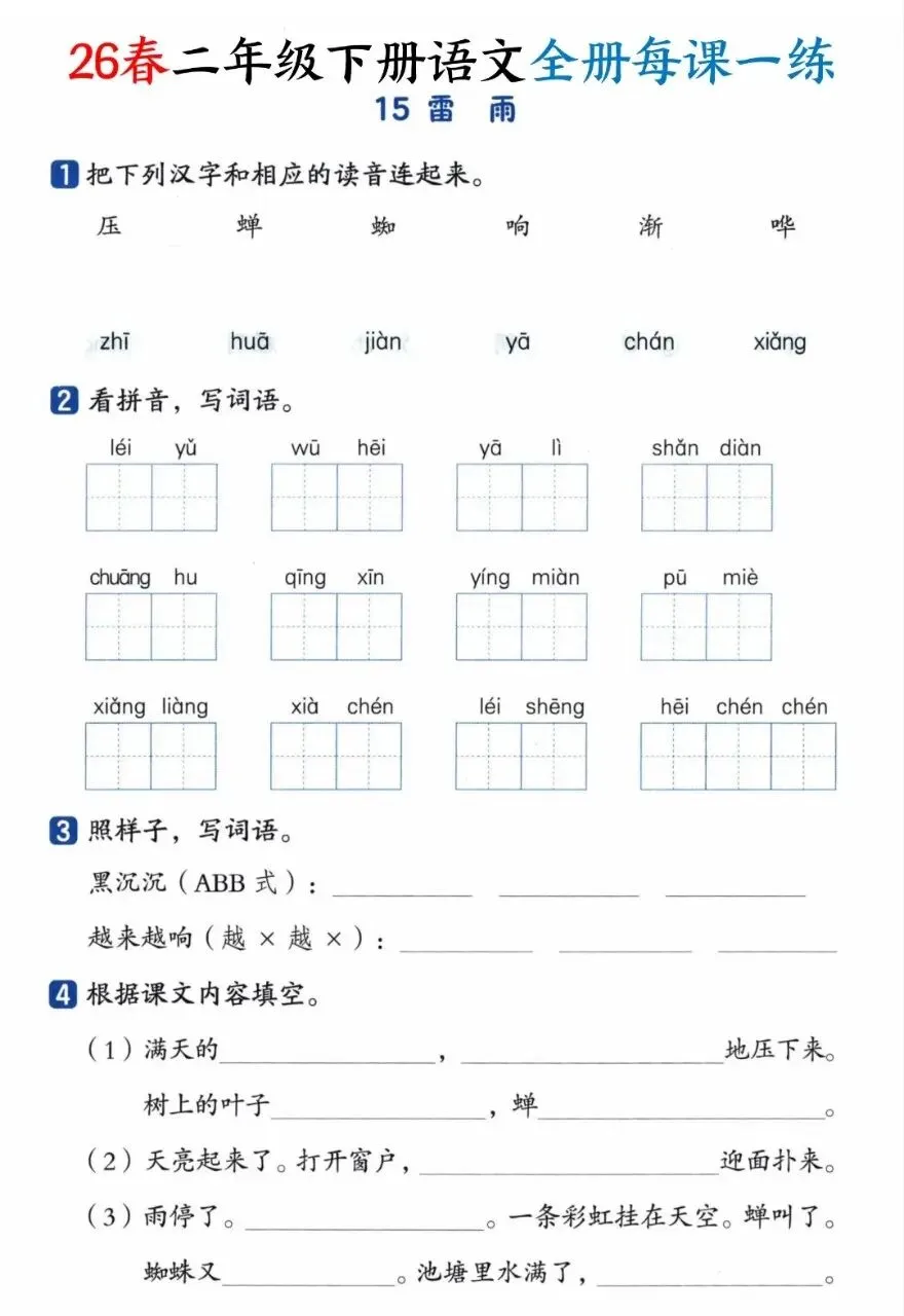 26年新版二年级下册语文《每课一练》,电子版可打印 2026年春季新版二年级下册语文《每课一练》,同步统编版教材、电子版可直接打印。内容紧扣课文进度,覆盖字词、句子、阅读与写话全要点,一课一练、及时巩固,帮孩子夯实基础、稳步提升语文能力。
