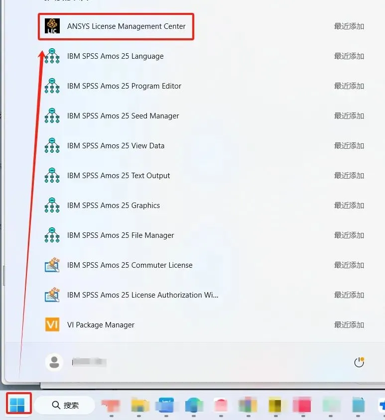 19.点击【开始菜单】,找到【ANSYS License Mangement Center】,打开。
