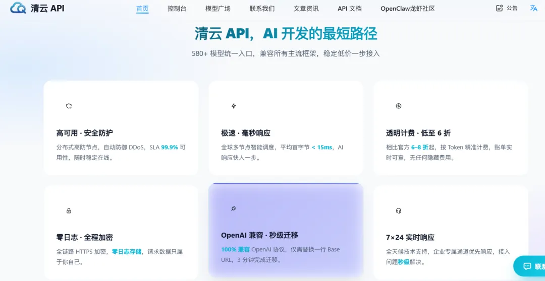 清云API – 集成GPT-5.4/Claude 4.6/Gemini 3.1/Deepseek/豆包等580+大模型接口 – 清云 API