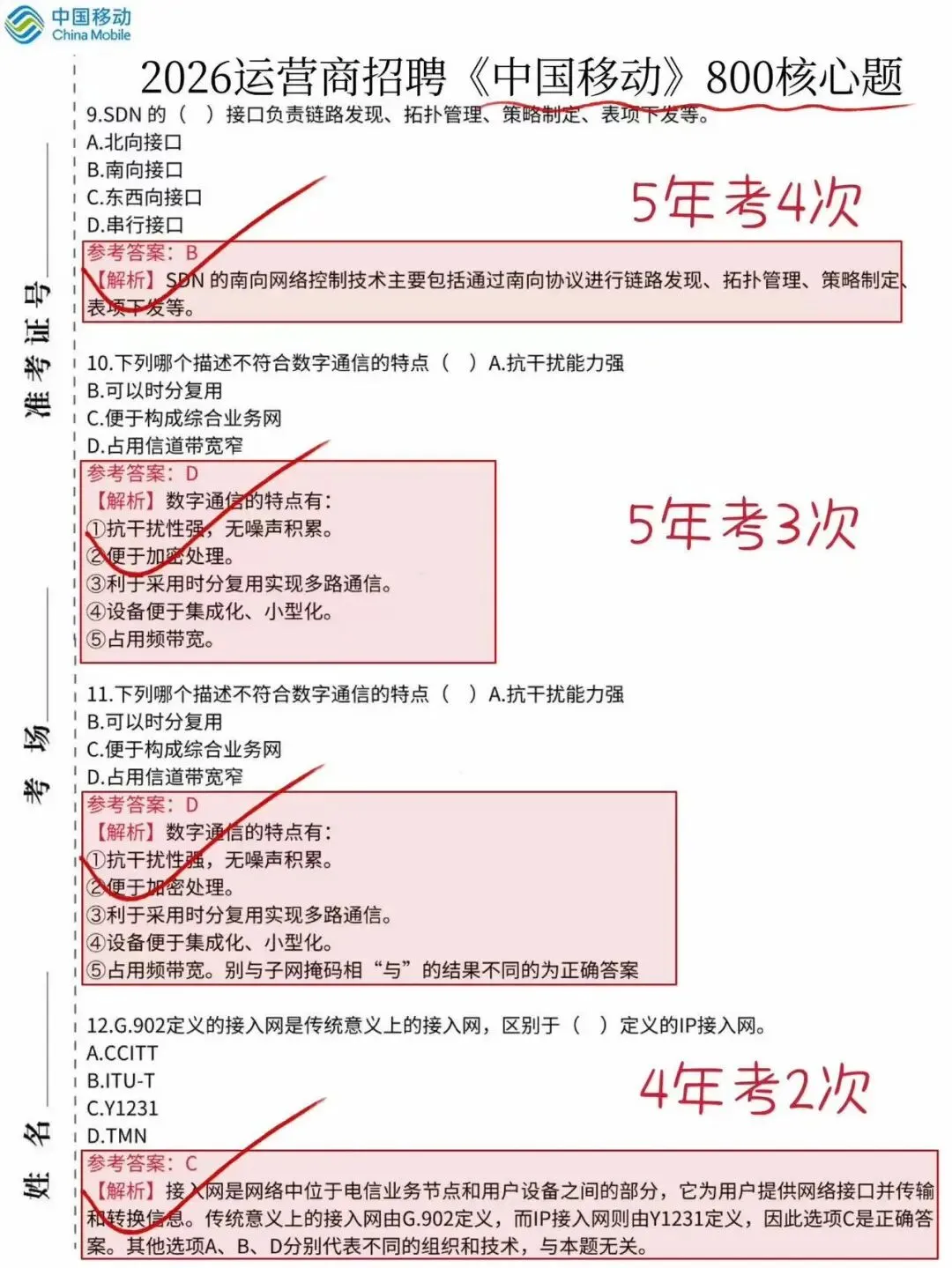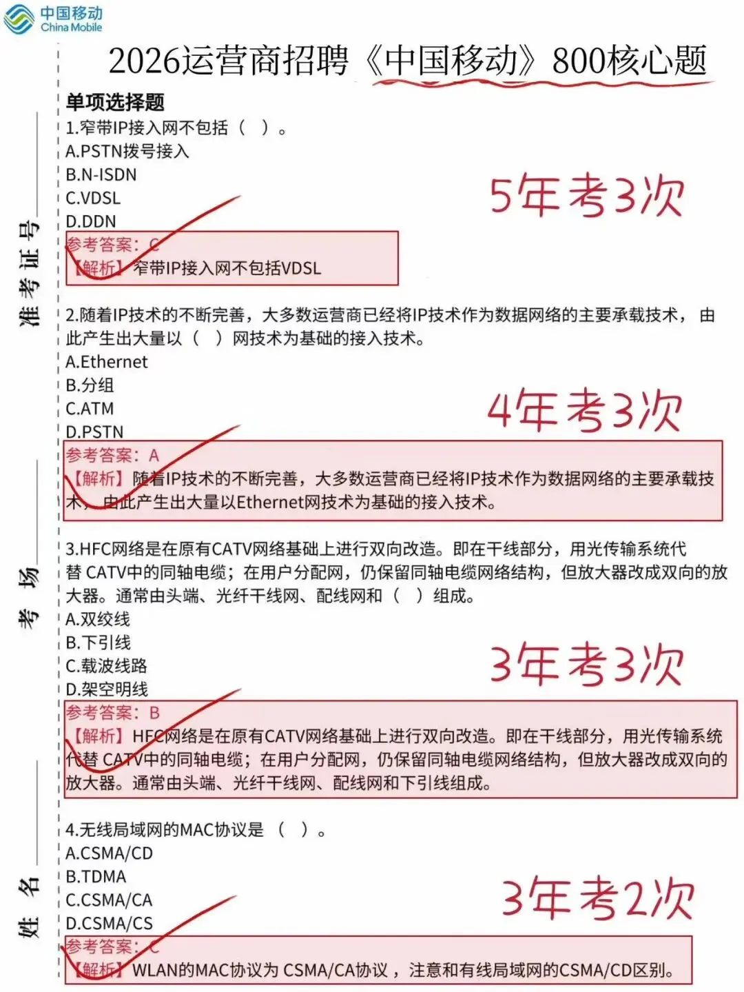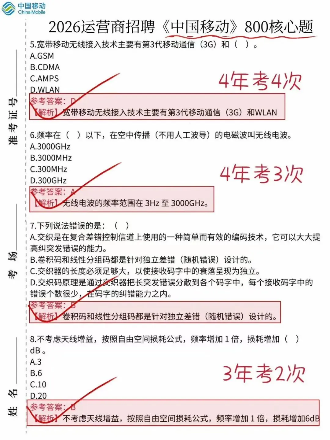 2026中国移动笔试考前压题卷、中国移动笔试真题、考前三色笔记、各类知识点、时政热点、考前冲刺、企业文化等等