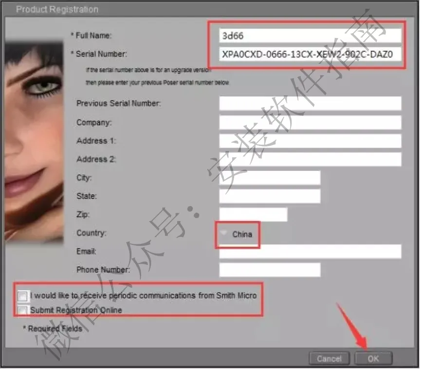 18.再打开poser2014,粘贴序列号,选择china,取消两个勾选,点ok。