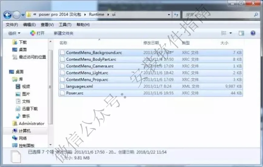 22.把这7个文件粘贴到Poser2014安装目录下的Runtime\ui文件夹里面。