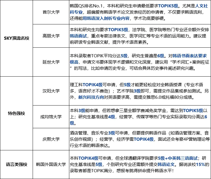 当然,如果你的目标是韩国顶尖大学,那语言要求可能更高,具体来看——